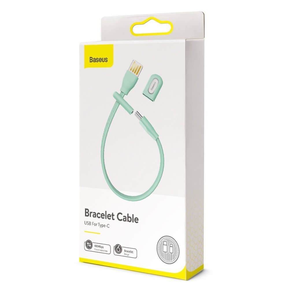 Кабел за устройства с USB-C порт (22 см) - Baseus Bracelet USB-C Cable (CATFH-06A) (зелен)