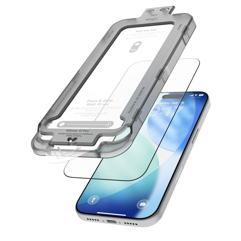 Elago Tempered Glass Protector е съвместим с Apple iPhone 17 Pro (6.3" 2025) и предлага най-добра оферта за защита на вашия смартфон. Избягвайте обикновените протектори, които могат да предизвикат дисторсия на изображението или да затруднят движението на пръстите.