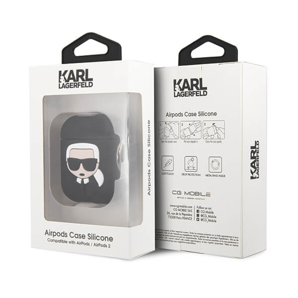 Karl Lagerfeld Airpods Ikonik Silicone Case - силиконов калъф с карабинер за Apple Airpods и Apple Airpods 2 (черен)