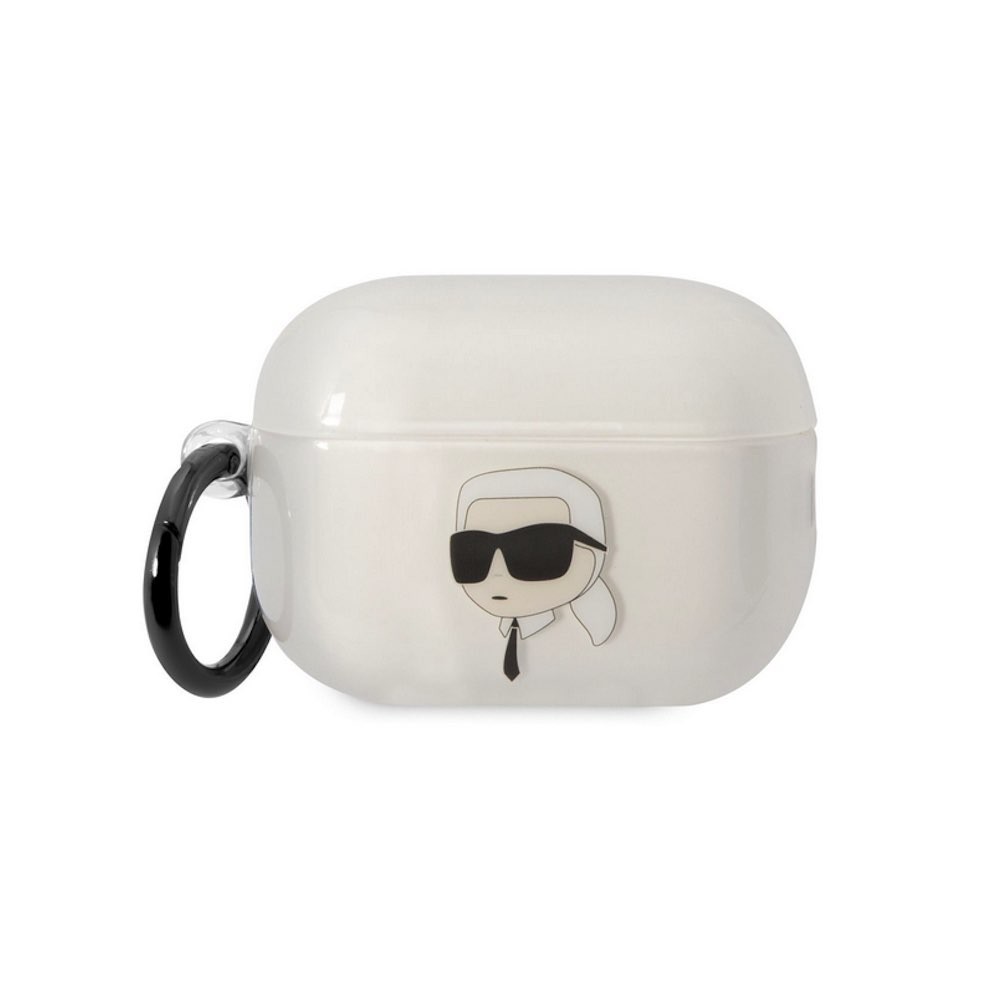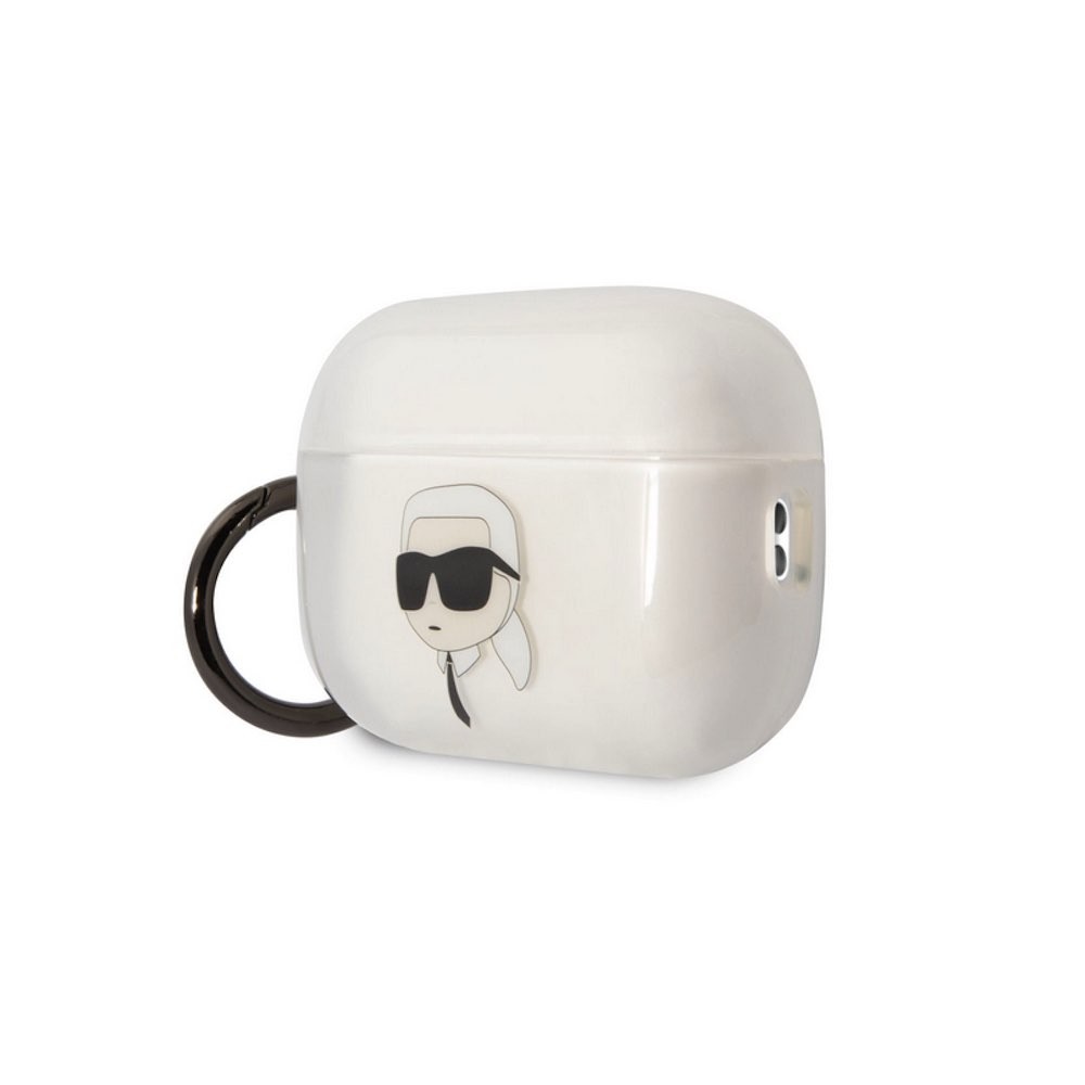 Karl Lagerfeld AirPods Pro 2 3D Logo NFT Karl Head Silicone Case - силиконов калъф с карабинер за Apple AirPods Pro 2 (бял-прозрачен)