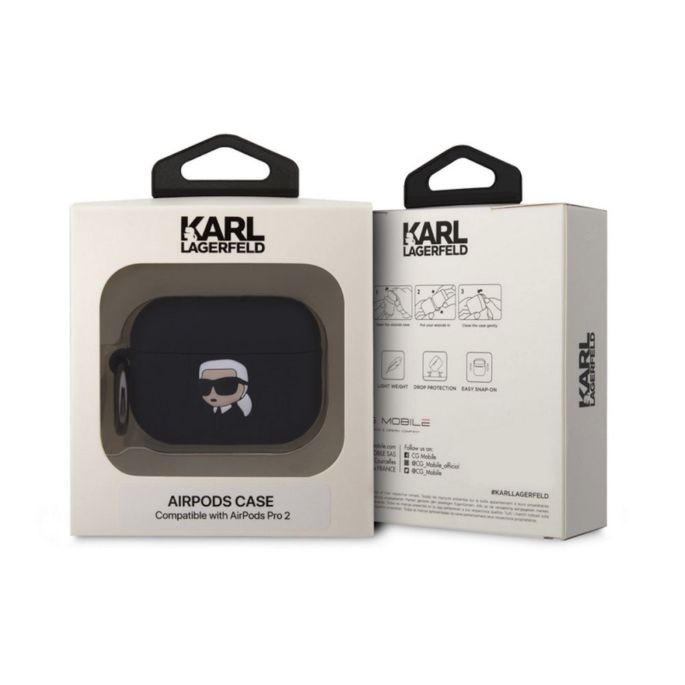Karl Lagerfeld AirPods Pro 2 3D Logo NFT Karl Head Silicone Case - силиконов калъф с карабинер за Apple AirPods Pro 2 (черен)
