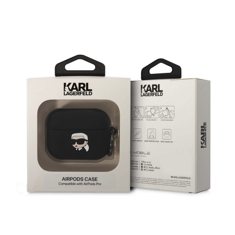 Karl Lagerfeld AirPods Pro 3D Logo NFT Karl Head Silicone Case - силиконов калъф с карабинер за Apple AirPods Pro (черен)