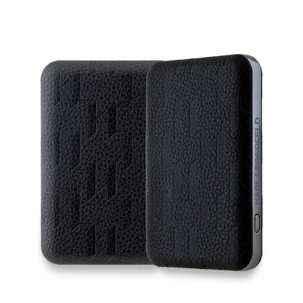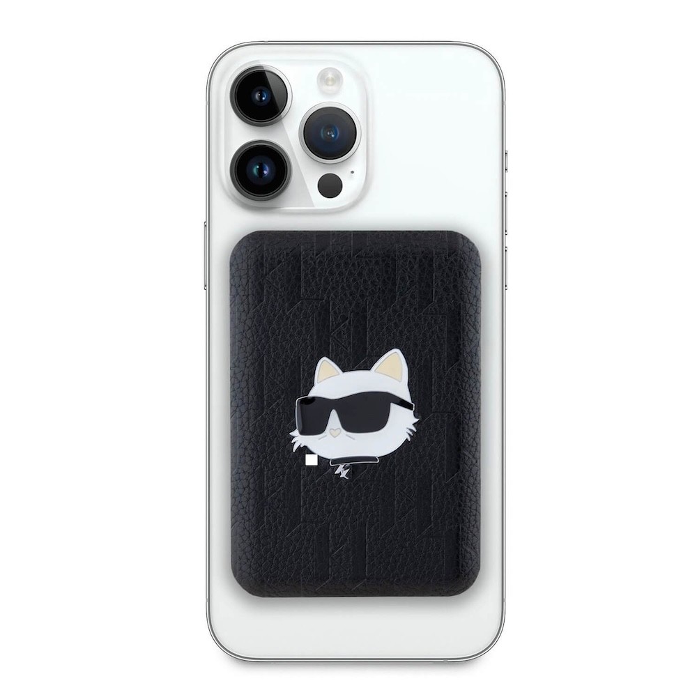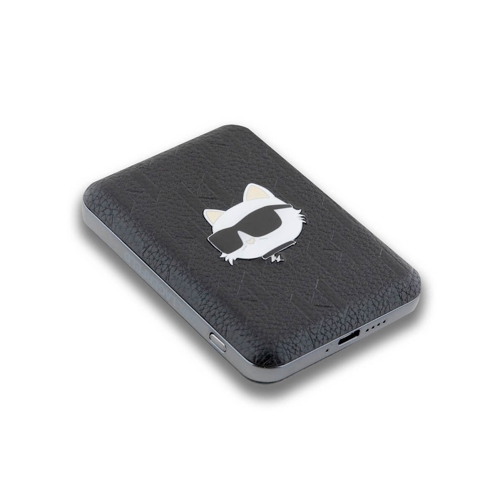 Karl Lagerfeld Embossed Choupette Head Magnetic Wireless Power Bank 5000 mAh 15W - преносима външна батерия с USB-C порт и безжично зареждане с MagSafe (черен)
