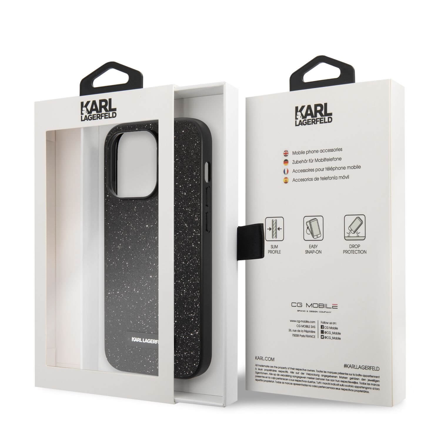 Karl Lagerfeld Glitter Plague Case - хибриден удароустойчив кейс за iPhone 14 Pro (черен)