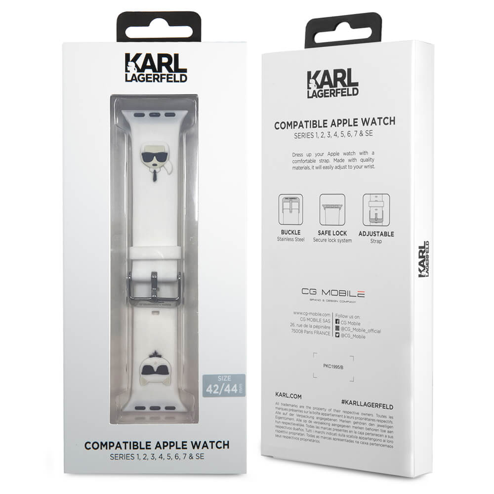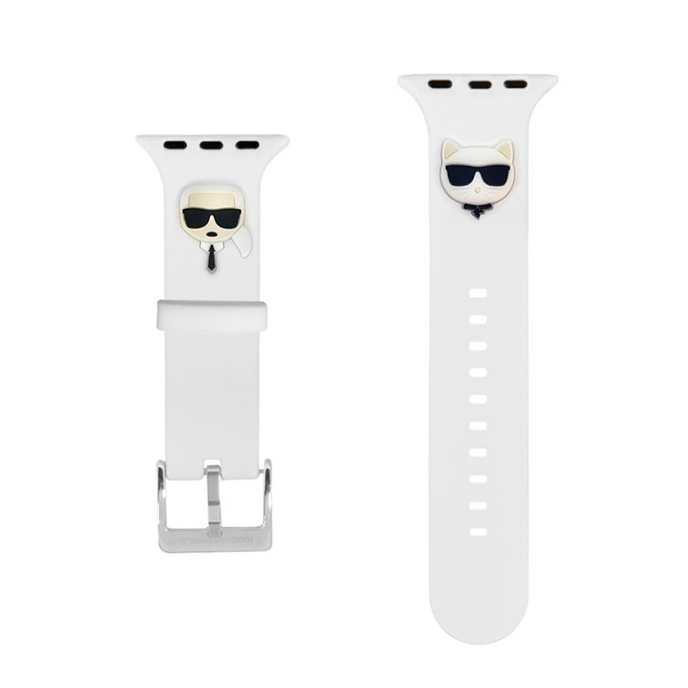 Karl Lagerfeld Karl and Choupette Silicone Watch Strap - силиконова каишка за Apple Watch 42мм, 44мм, 45мм, 46мм, Ultra 49мм (бял)