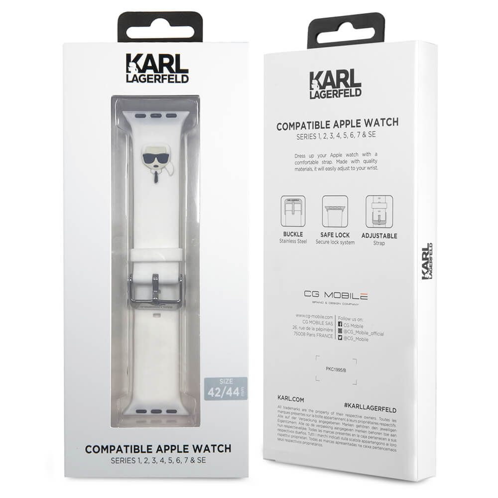 Karl Lagerfeld Karl Head Silicone Watch Strap - силиконова каишка за Apple Watch 42мм, 44мм, 45мм, 46мм, Ultra 49мм (бял)