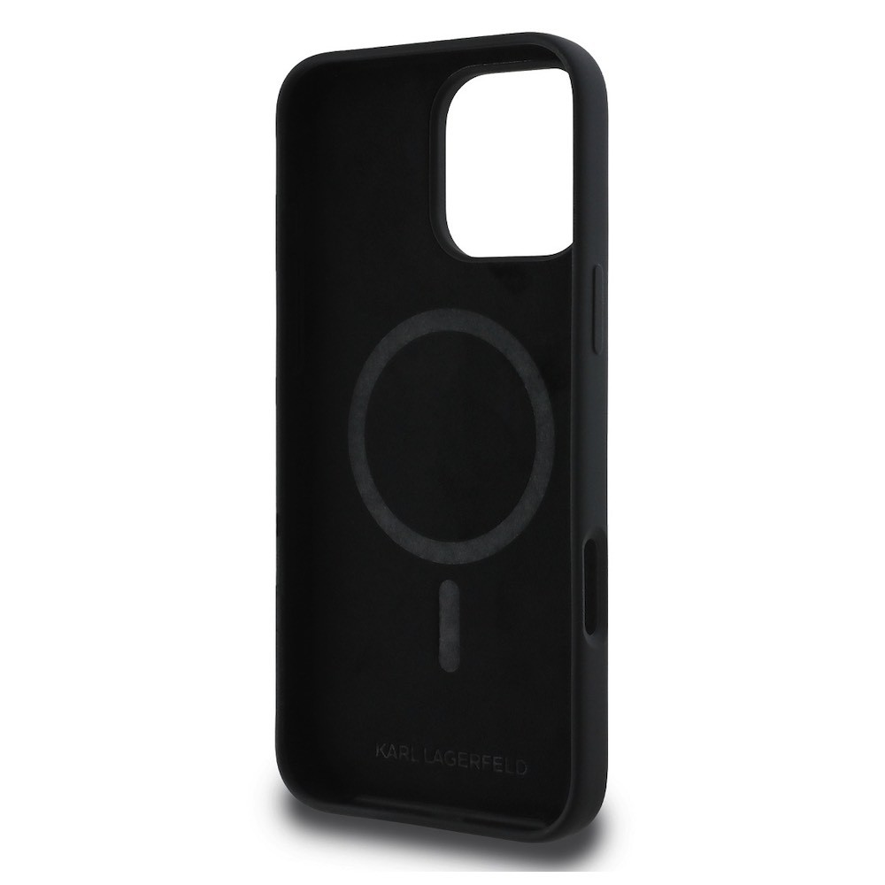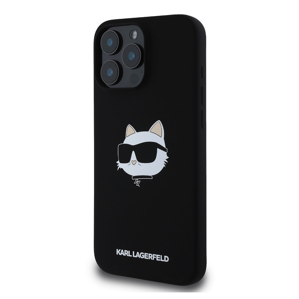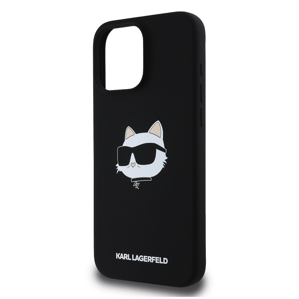 Karl Lagerfeld Liquid Silicone Choupette Head MagSafe Case - дизайнерски силиконов кейс с MagSafe за iPhone 16 Pro Max (черен)