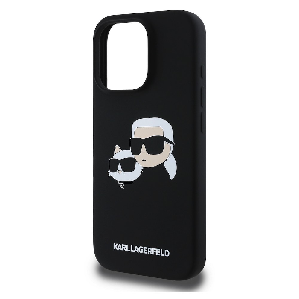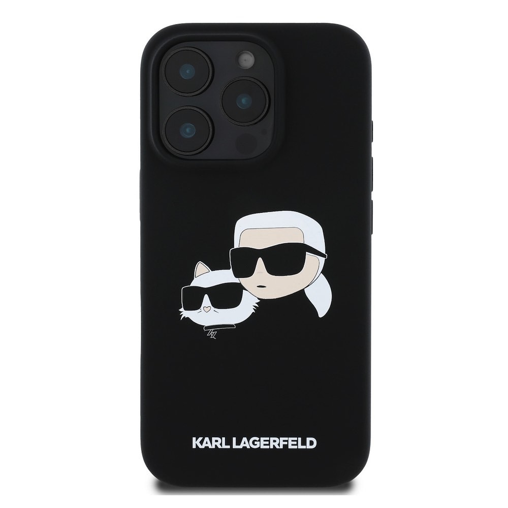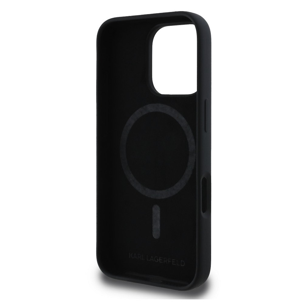 Karl Lagerfeld Liquid Silicone Double Heads MagSafe Case - дизайнерски силиконов кейс с MagSafe за iPhone 16 Pro Max (черен)