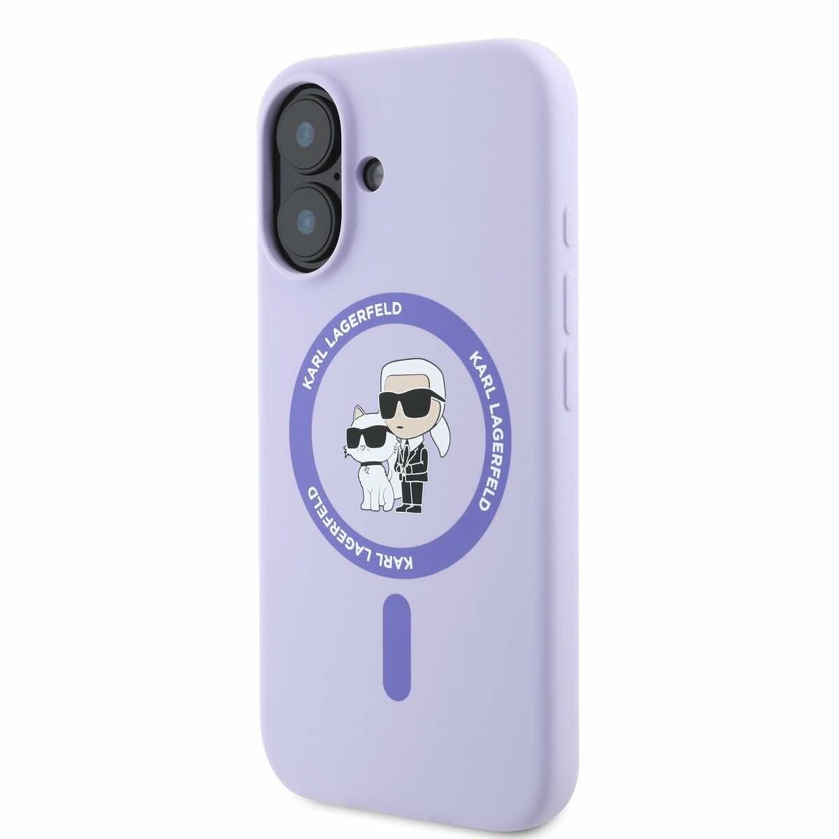 Karl Lagerfeld Liquid Silicone Karl and Choupette MagSafe Case - дизайнерски силиконов кейс с MagSafe за iPhone 16 (розов)