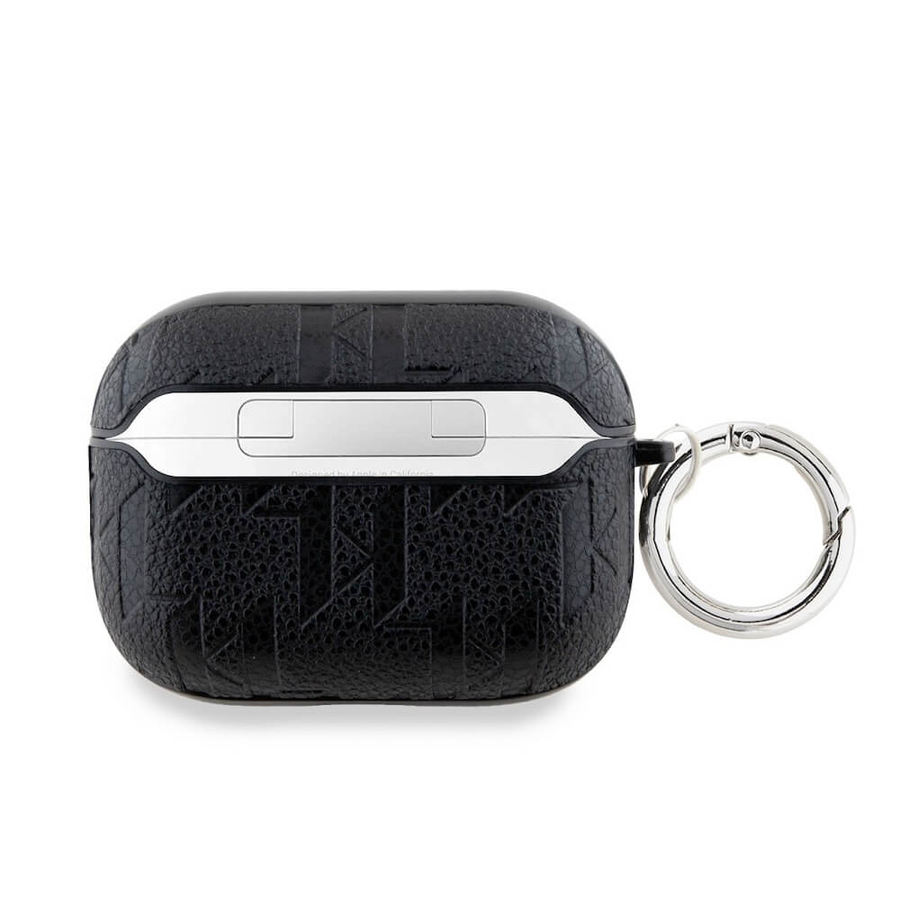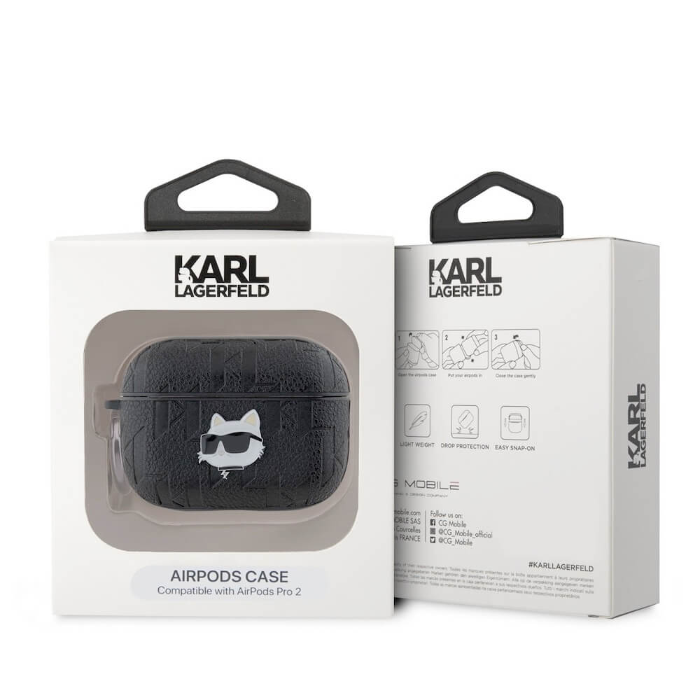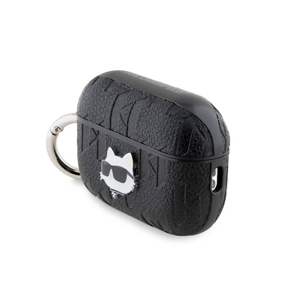 Karl Lagerfeld PU Embossed Choupette Head Case - кожен кейс с карабинер за Apple AirPods Pro 2 (черен)