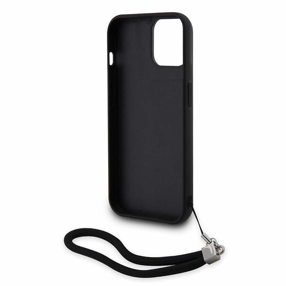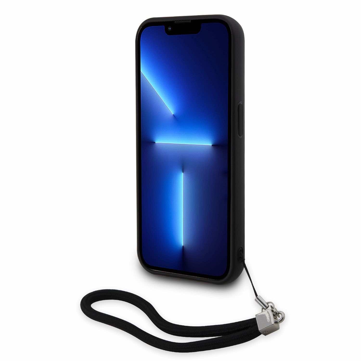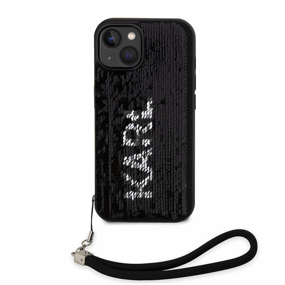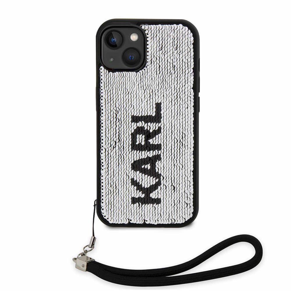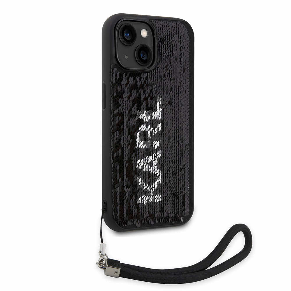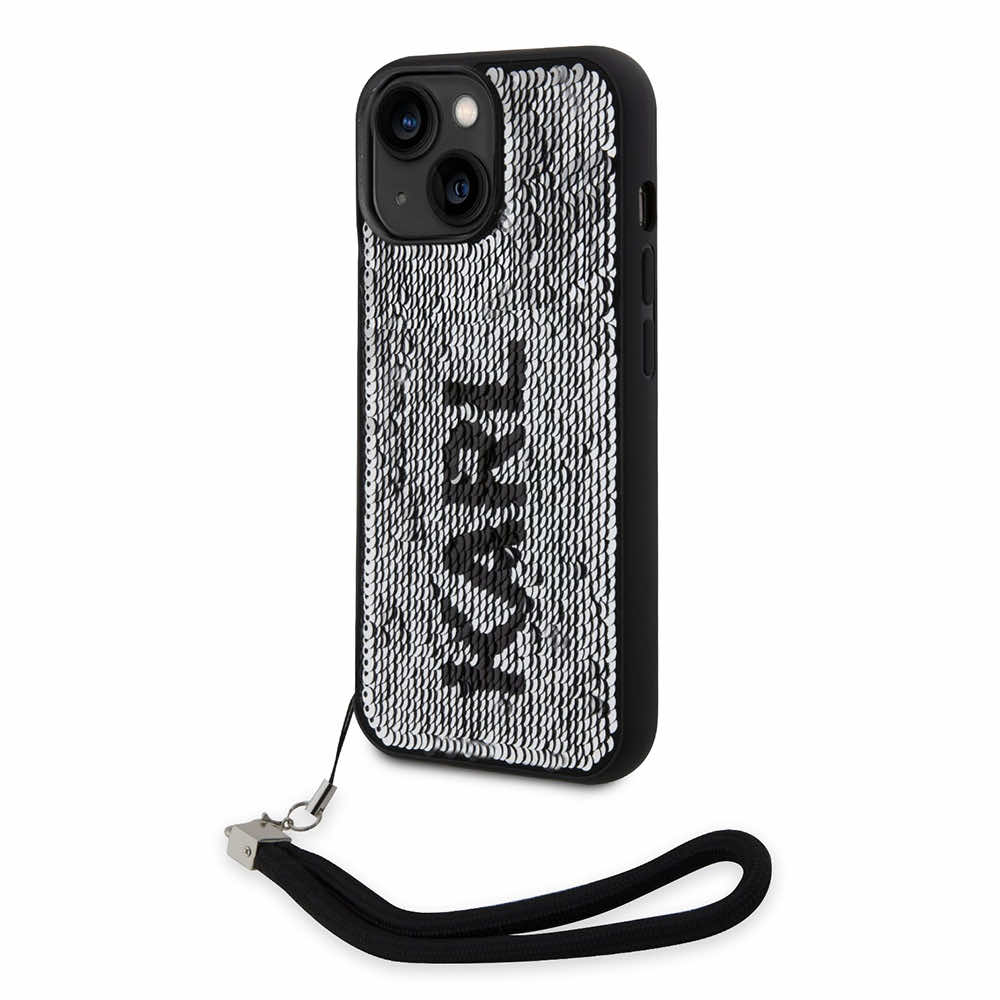 Karl Lagerfeld Sequins Reversible Case - дизайнерски силиконов кейс с връзка за носене за iPhone 14 (черен)