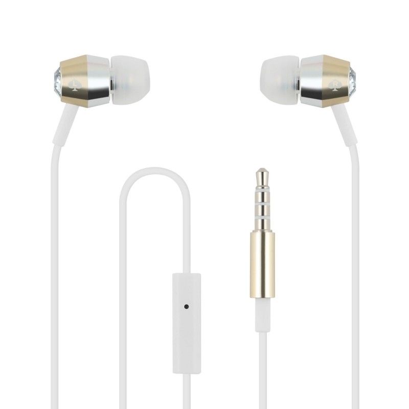 Kate Spade New York EarBuds - луксозни слушалки с кристали и микрофон за мобилни устройства (бял)
