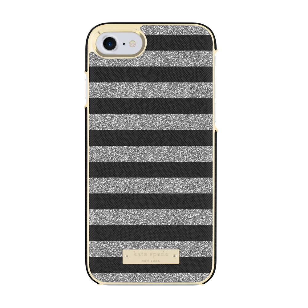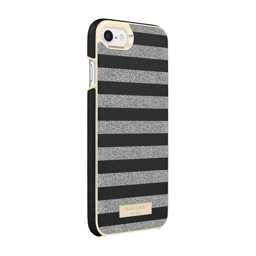 Kate Spade Wrap Glitter Stripe Case - удароустойчив хибриден кейс за iPhone SE (2020), iPhone 8, iPhone 7 (черен)