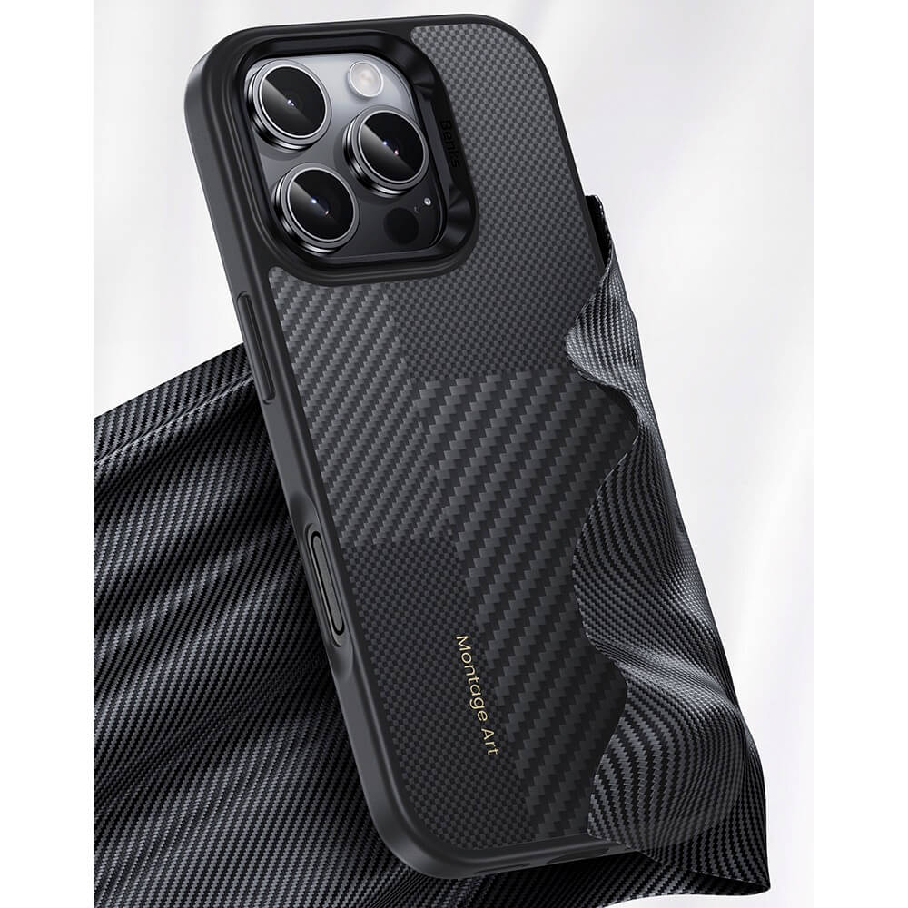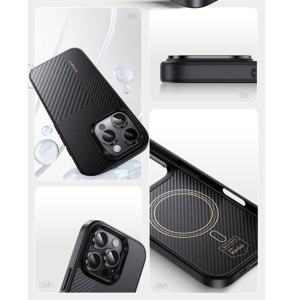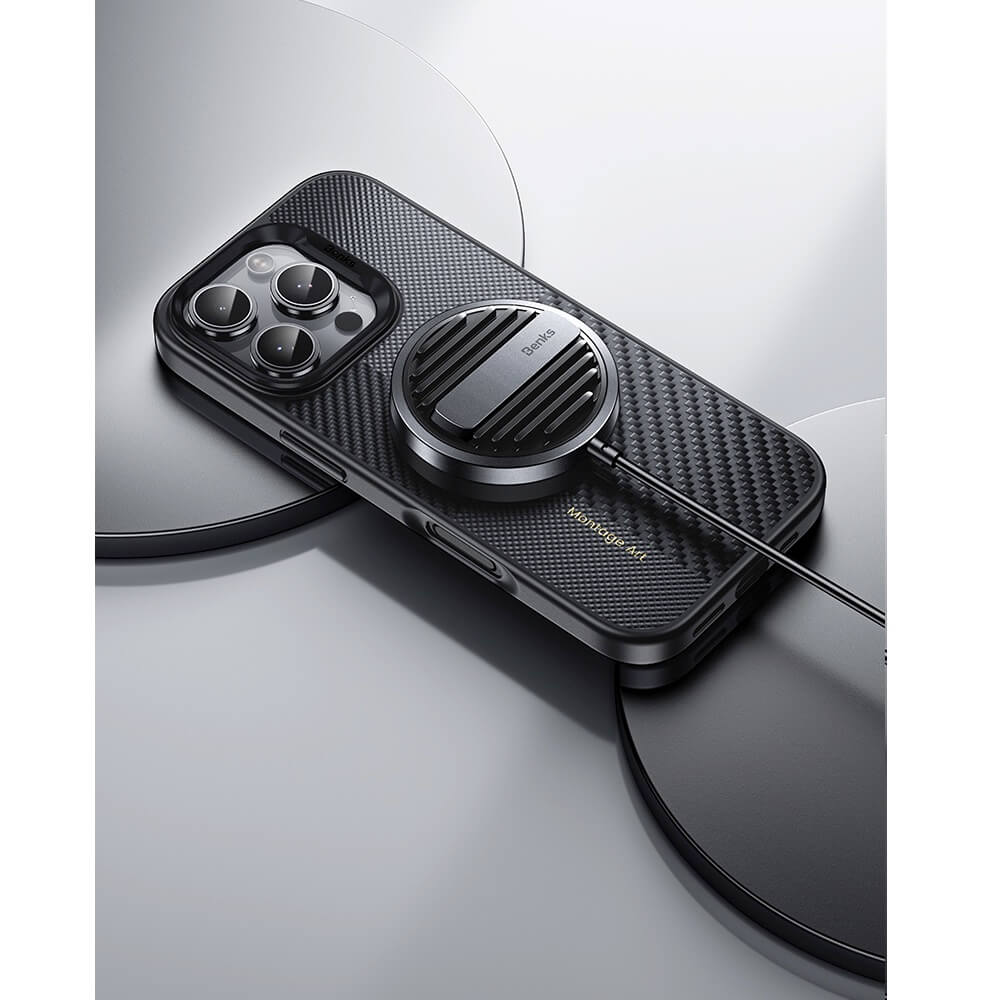 Кевларен кейс с MagSafe за iPhone 16 Pro Max - Benks Magnetic Armor Pro Montage Kevlar Metal Frame Camera Control Case 600D and 1500D (черен)