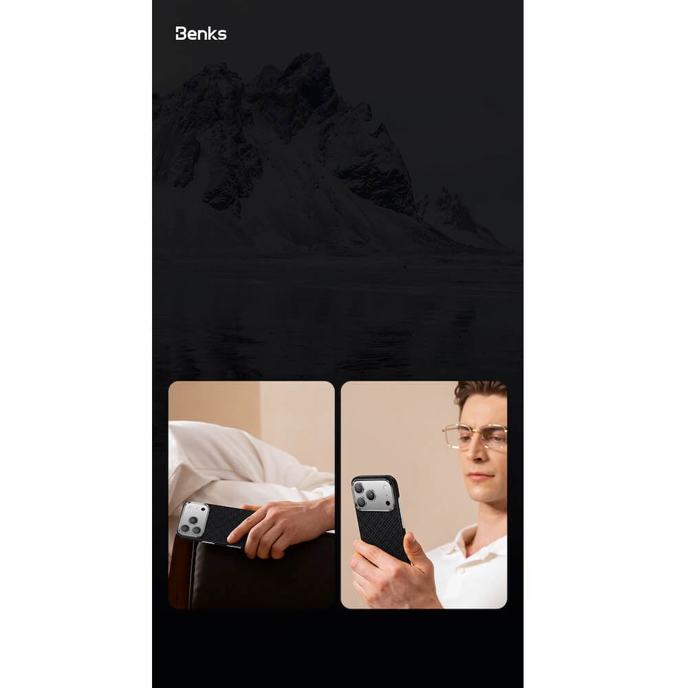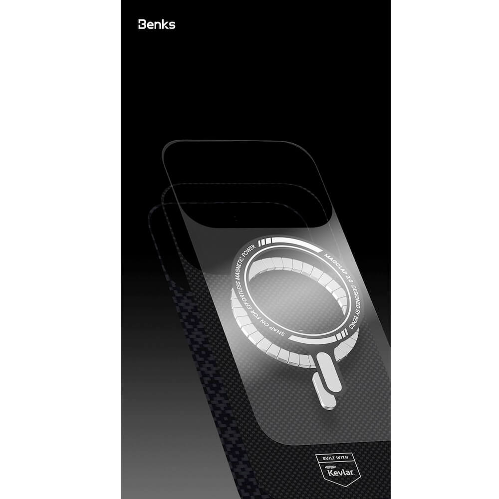 Кевларен кейс с MagSafe за iPhone 17 - Benks ArmorGrid ArmorAir Magnetic Kevlar Metal Frame Case 600D (черен)