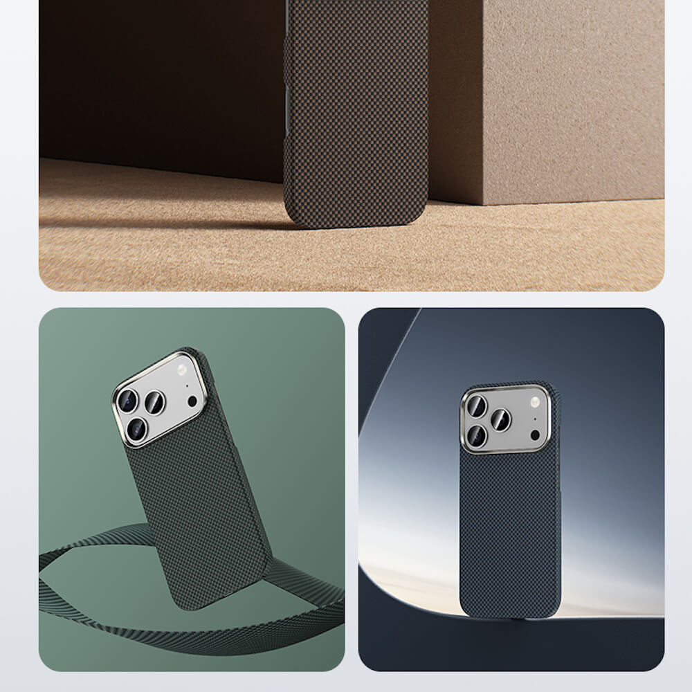 Създаден от 100% арамидни 1000D влакна, използвани в самолетостроенето, кейсът осигурява отлична защита, като абсорбира напрежението при удари и натиск. Благодарение на магнитната съвместимост с MagSafe, вие получавате нов стандарт за бързо и лесно свързване на аксесоари и безжични зарядни устройства.