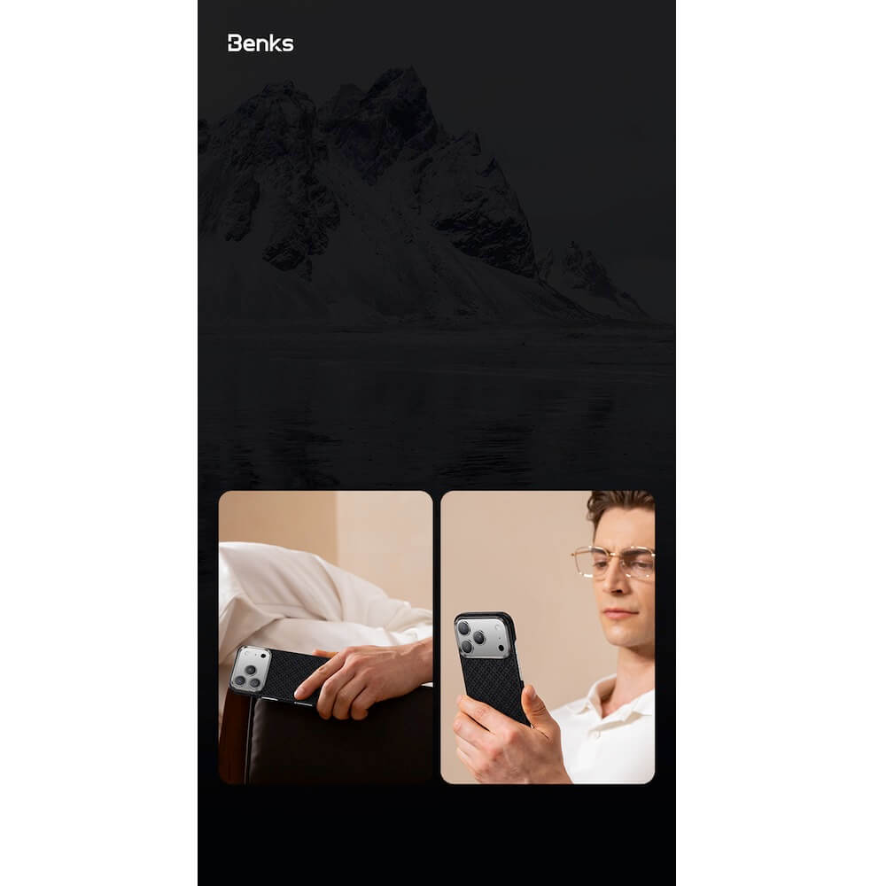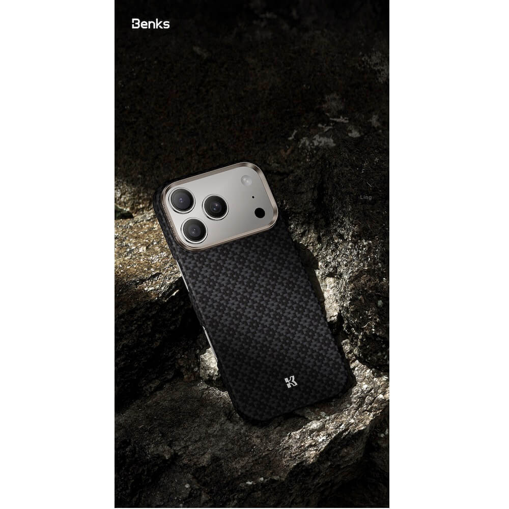 Кевларен кейс с MagSafe за iPhone 17 Pro Max - Benks ArmorGrid ArmorAir Magnetic Kevlar Metal Frame Case 600D (черен)