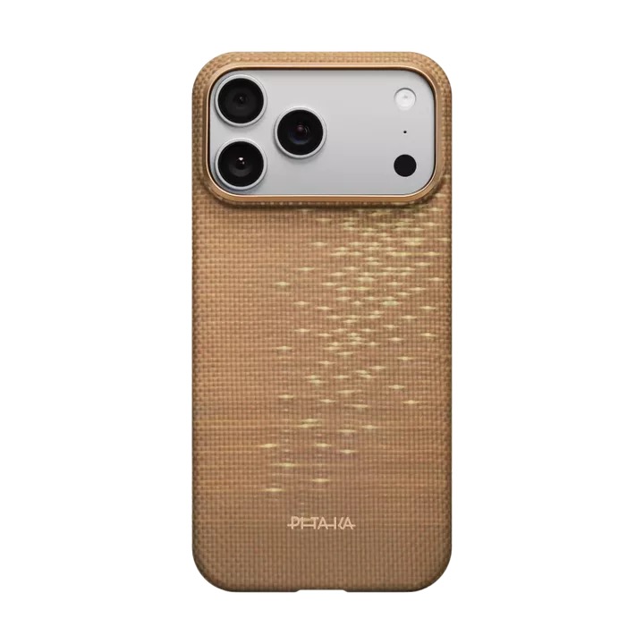 Кевларен кейс с MagSafe за iPhone 17 Pro - Pitaka Glints of Gold Edge Ultra Slim Aramid Fiber Case