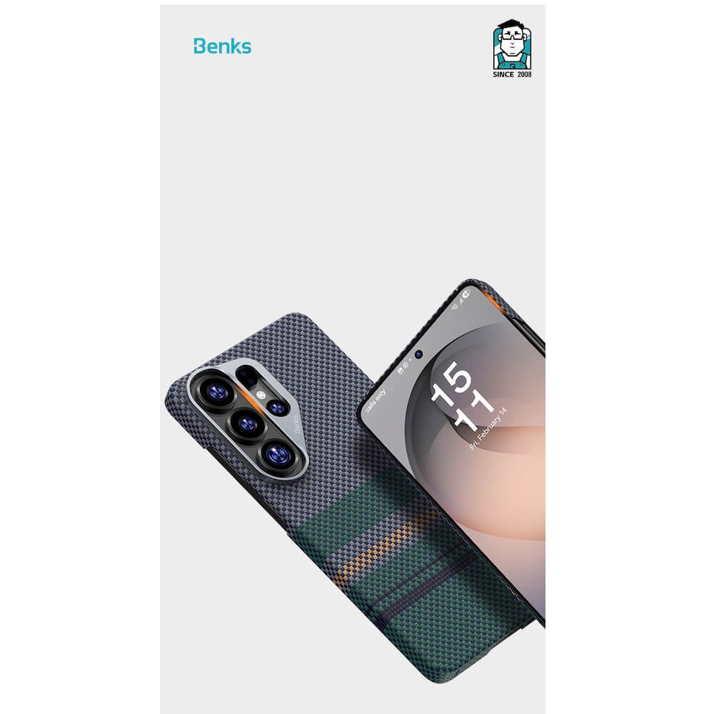 Кевларен кейс с MagSafe за Samsung Galaxy S26 - Benks Armor Air Aurora Kevlar Case 600D (черен-зелен)