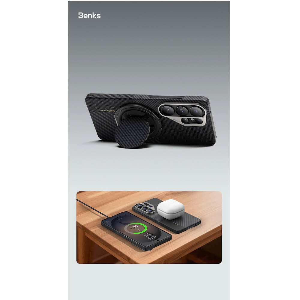 Кевларен кейс с MagSafe за Samsung Galaxy S26 Ultra - Benks Magnetic Air Montage Kevlar Metal Frame Case 600D+1500D (черен)
