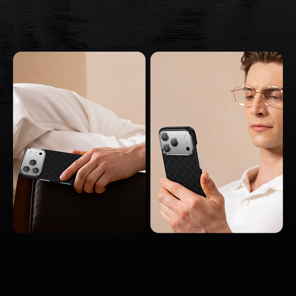 Този кейс е изработен от 100% арамидни 600D влакна, използвани в самолетостроенето, което го прави изключително тънък и ергономичен, но същевременно здрав и устойчив. Снабден е с магнит, който осигурява съвместимост с MagSafe аксесоари, предоставяйки нов стандарт за бързо и лесно свързване на аксесоари и безжични зарядни устройства.