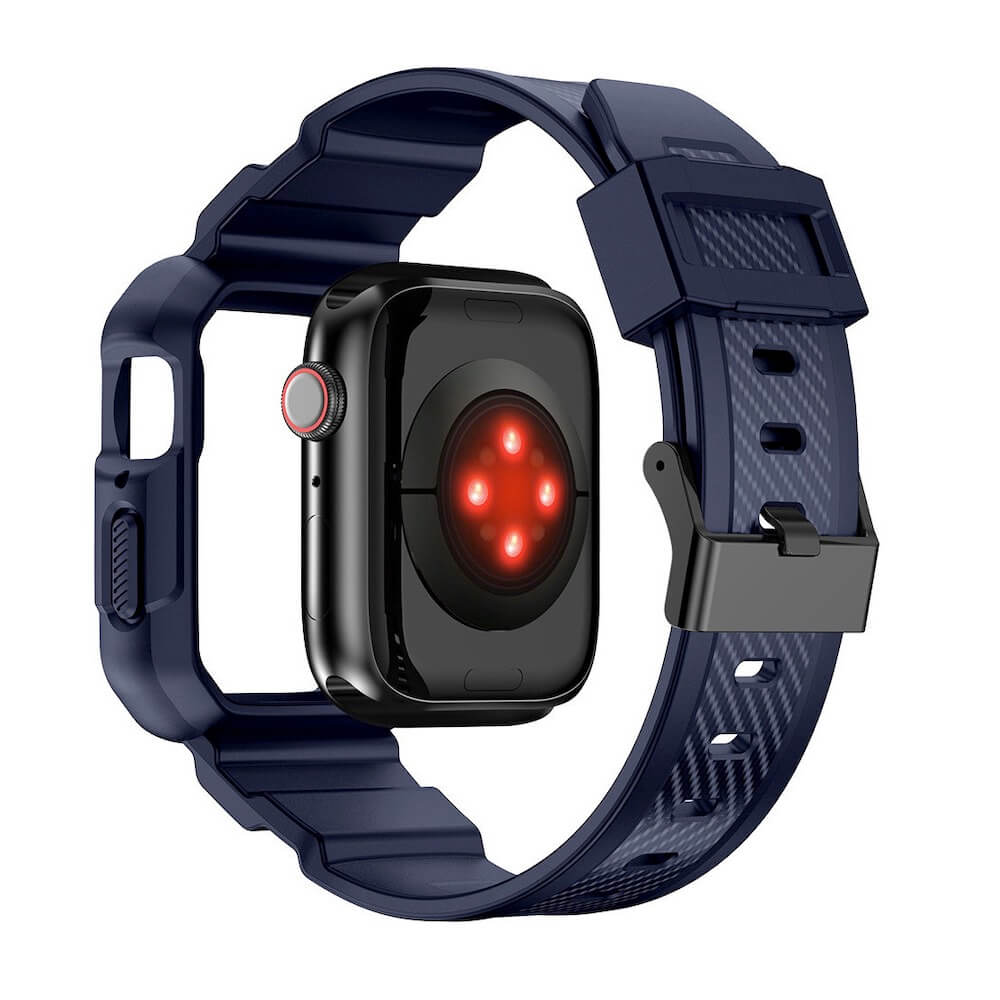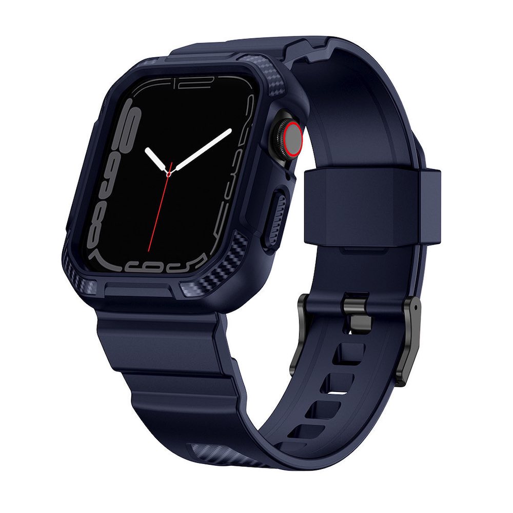 Kingxbar 2in1 Watch Strap and Case CYF537 - удароустойчив TPU кейс с вградена каишка за Apple Watch 44мм, 45мм (син)