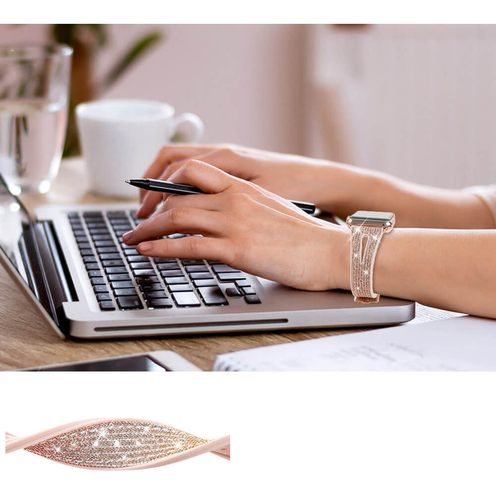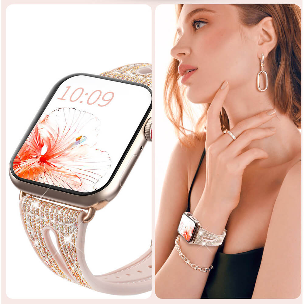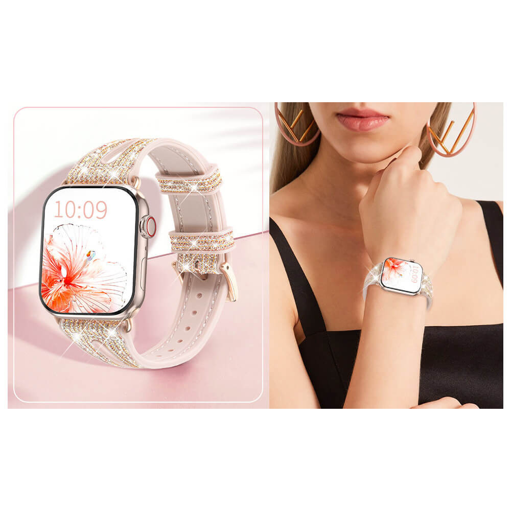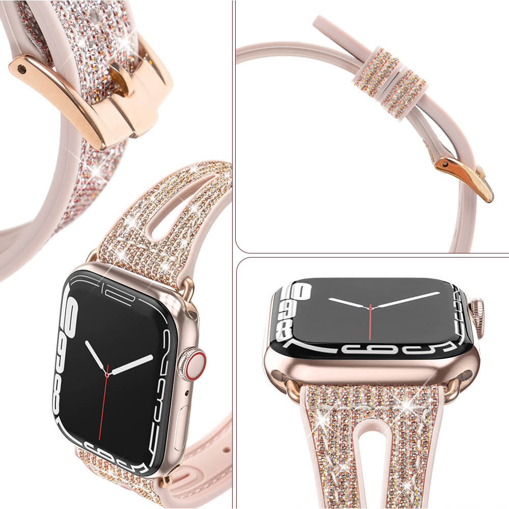 Kingxbar New Chameleon Band - силиконова каишка с кристали за Apple Watch 42мм, 44мм, 45мм, 46мм, Ultra 49мм (златист-розов)