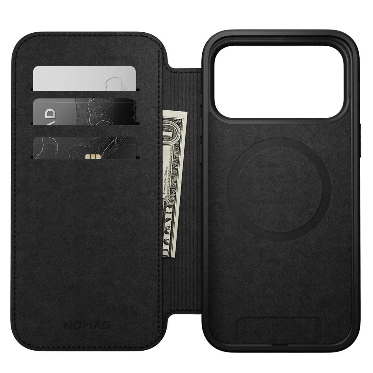 Кожен калъф (естествена кожа), тип портфейл с MagSafe за iPhone 17 Pro - Nomad Modern Leather Folio MagSafe Case (черен)