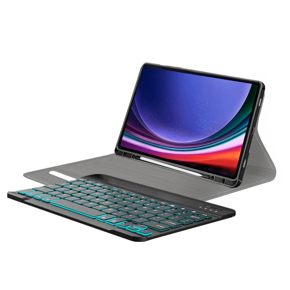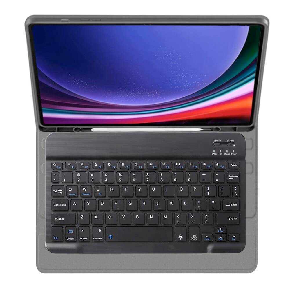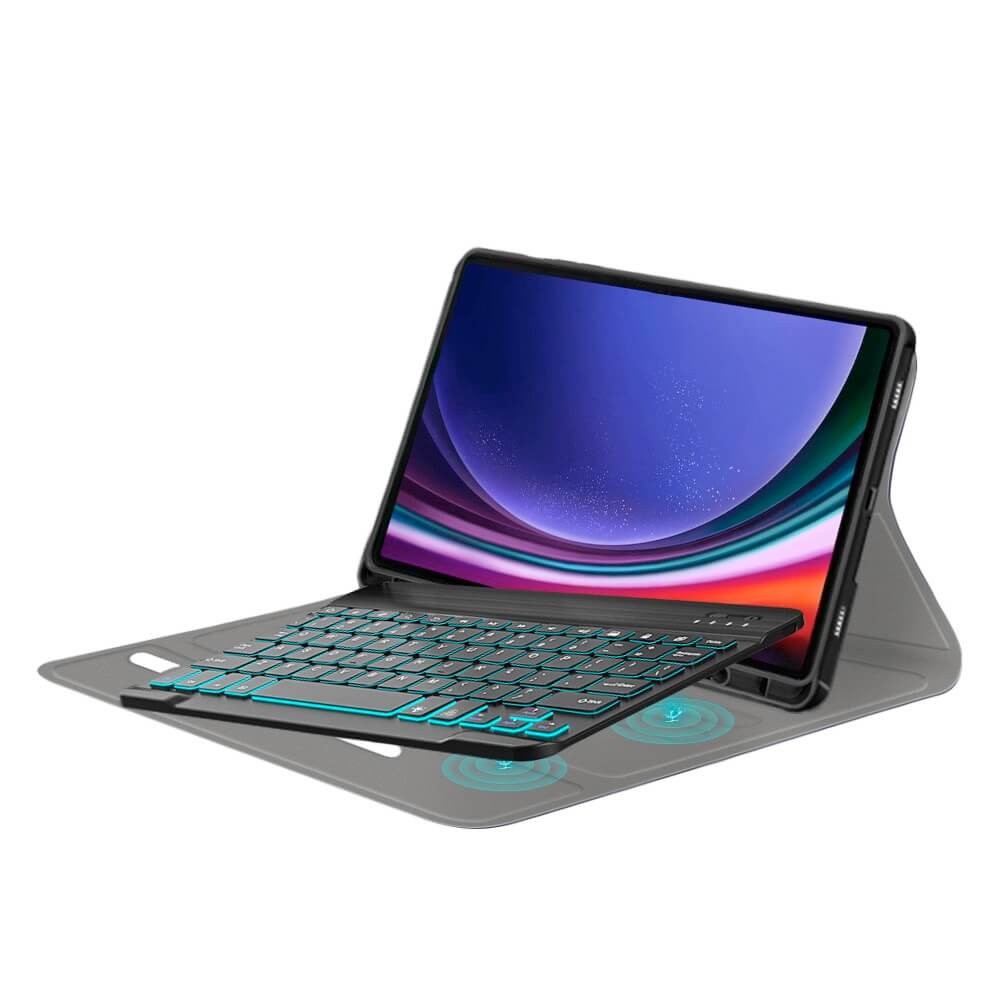 Кожен калъф с безжична блутут клавиатура и отделение за Samsung S-Pen за Samsung Galaxy S10 Plus, Galaxy Tab S9 Plus - Techsuit CozyTab Case and Bluetooth Keyboard (черен)