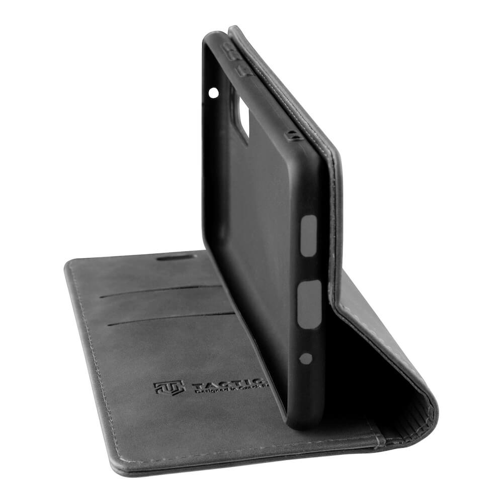 Кожен калъф, тип портфейл с поставка и отделение за кр. карти за Xiaomi Redmi Note 12S - Tactical Xproof Flip Case (черен)