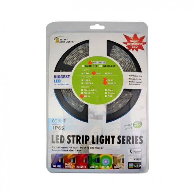 - SMD5050, с 4 пинов конектор в двата края, IP63, с покритие от безцветно лепило, с бяла двойнолепяща лента на 3M