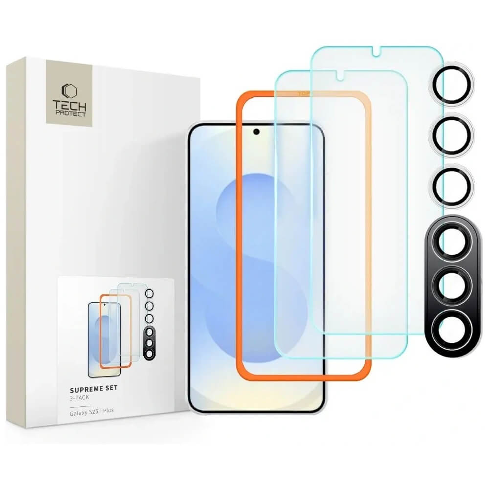 Комплект 2 броя стъклено защитно покритие за дисплея и стъклено защитно покритие за камерата на Samsung Galaxy S25 Plus - Tech-Protect Supreme Protection Set (прозрачен)