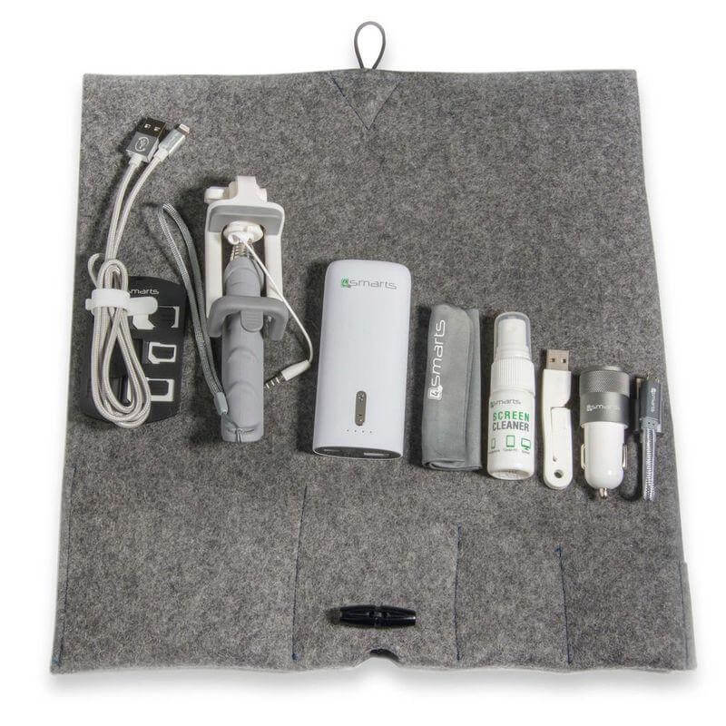Комплект аксесоари, кабели, зарядни, батерия, селфи стик и др. за мобилни устройства - 4smarts Felt Travel Bag Set