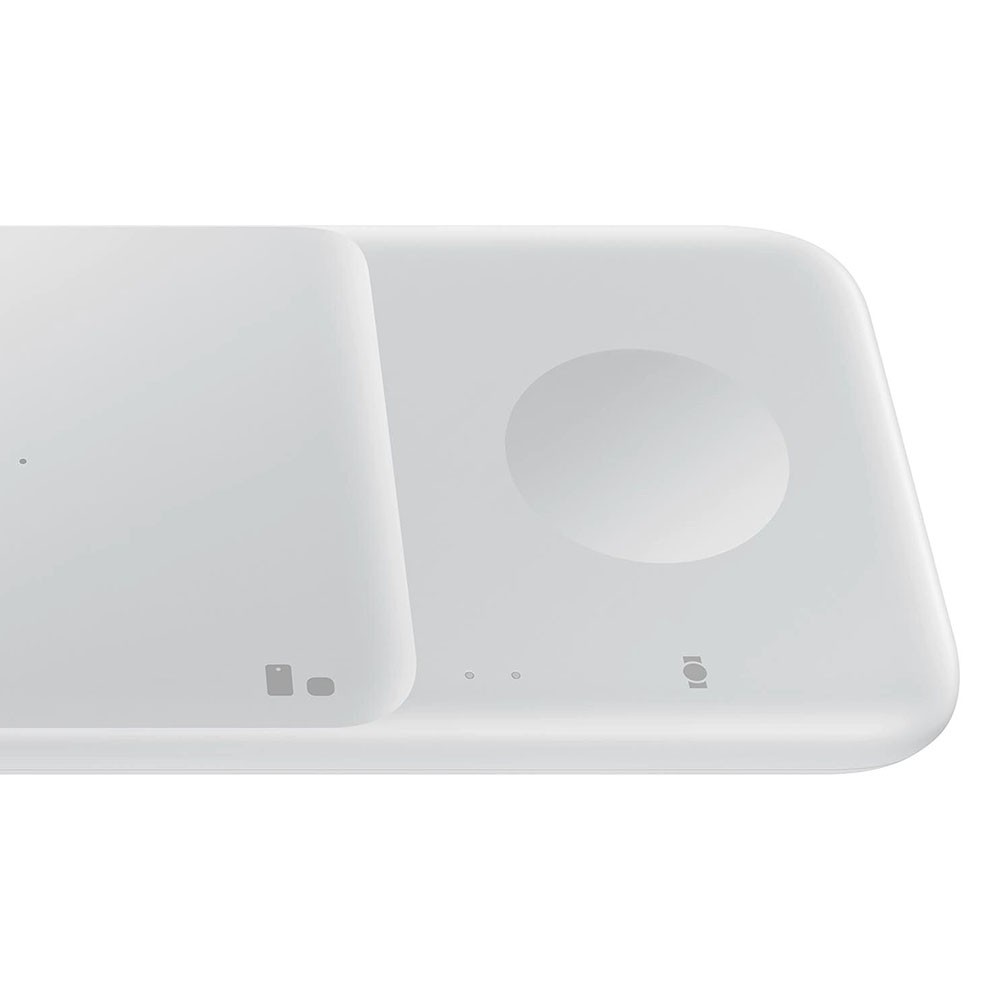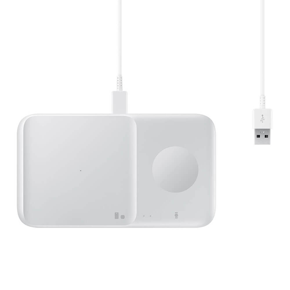 Комплект двойна поставка (пад) за безжично зареждане, зарядно и кабел за мобилни устройства, Galaxy Watch и слушалки - Samsung Wireless Charger Duo EP-P4300TWEGEU (бял)