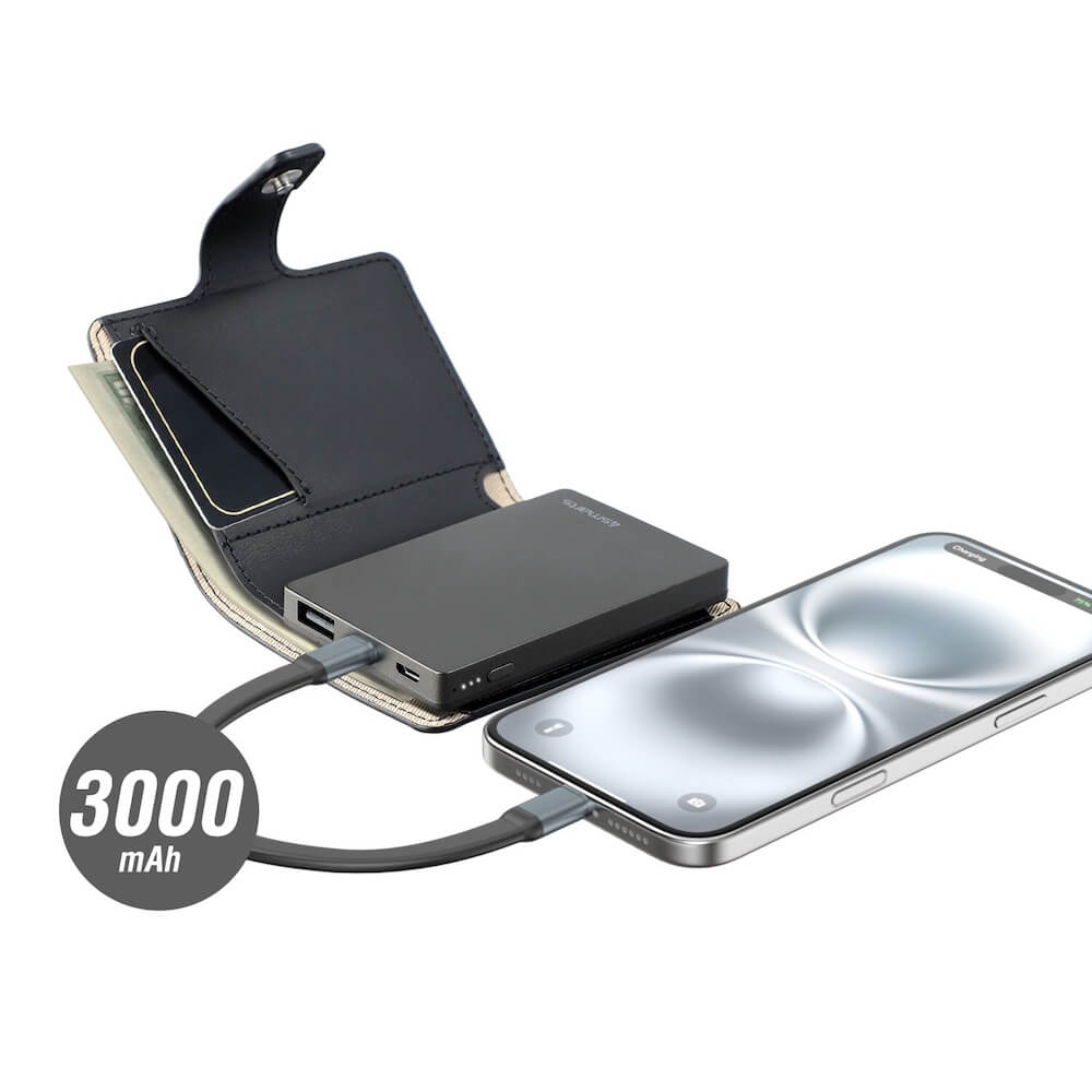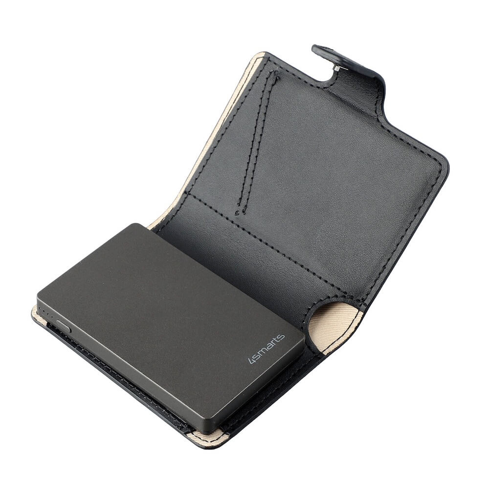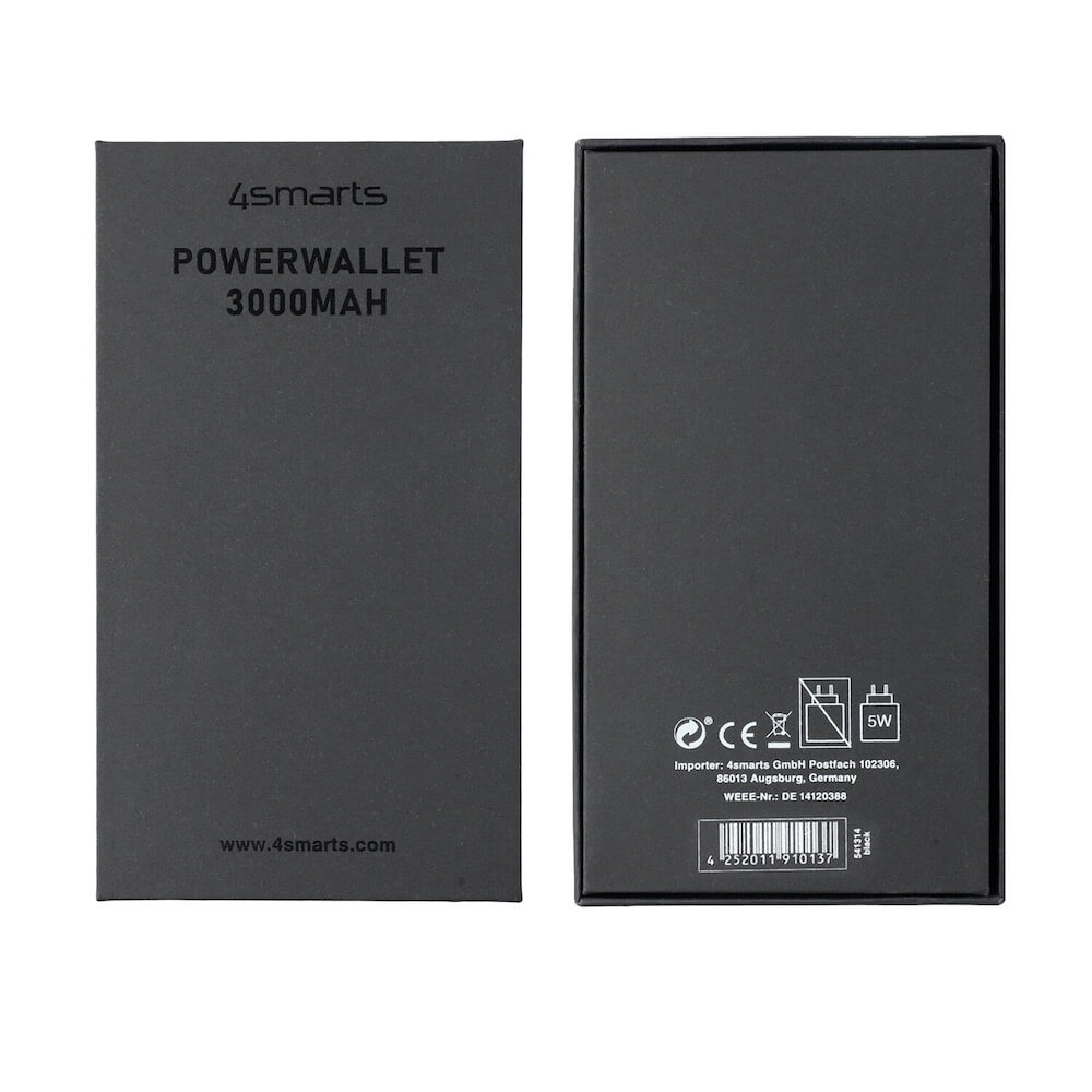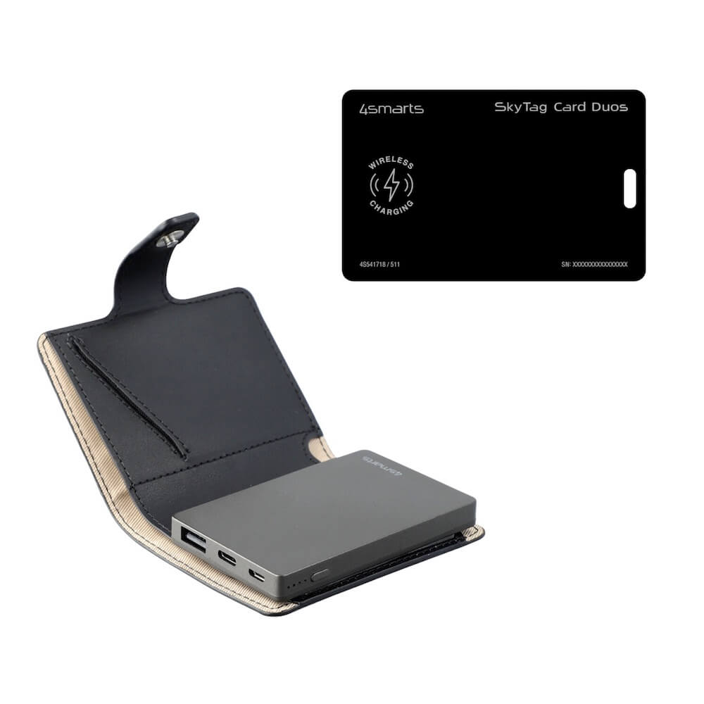 Комплект портфейл с външна батерия, устройство за намиране на вещи, мултифункционален инструмент - 4smarts PowrWallet Set SkyTag Duos ReCharge Card Location Finder (черен)