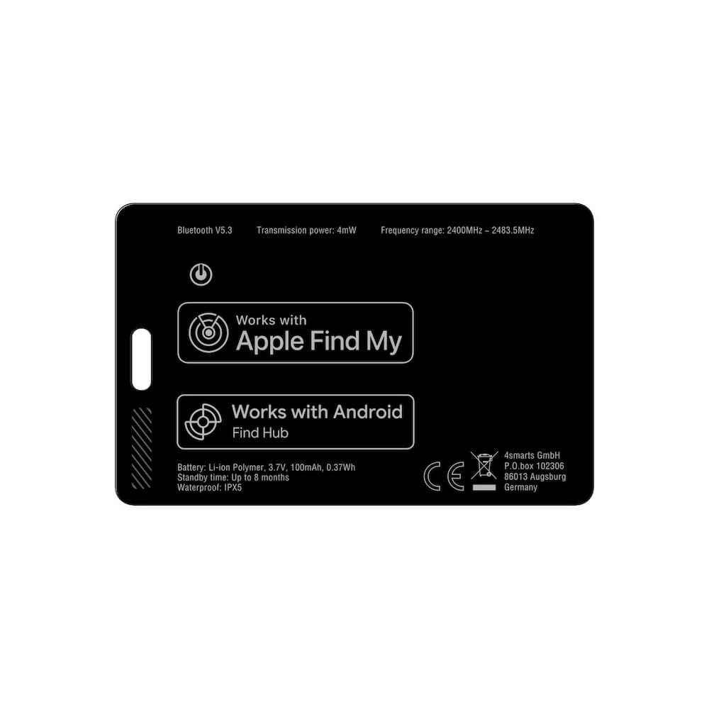- Софициален сертификат, SkyTag Card е една от първите алтернативи на AirTag. Благодарение на сертификацията от Apple и Android, 4smarts SkyTag може да се използва и с приложение на Apple или Android.