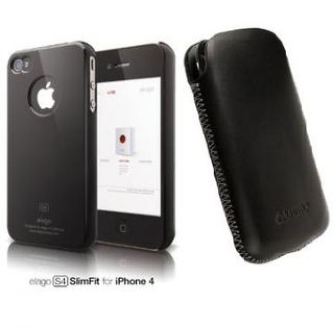 Krusell DONSö + Elago S4 - кожен калъф и твърд кейс за iPhone 4/4S (черен)
