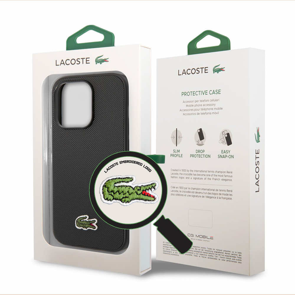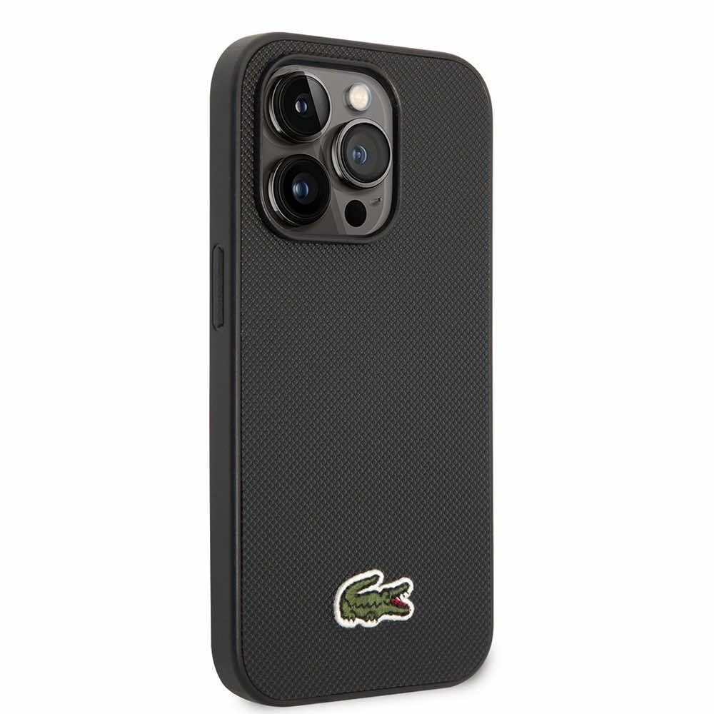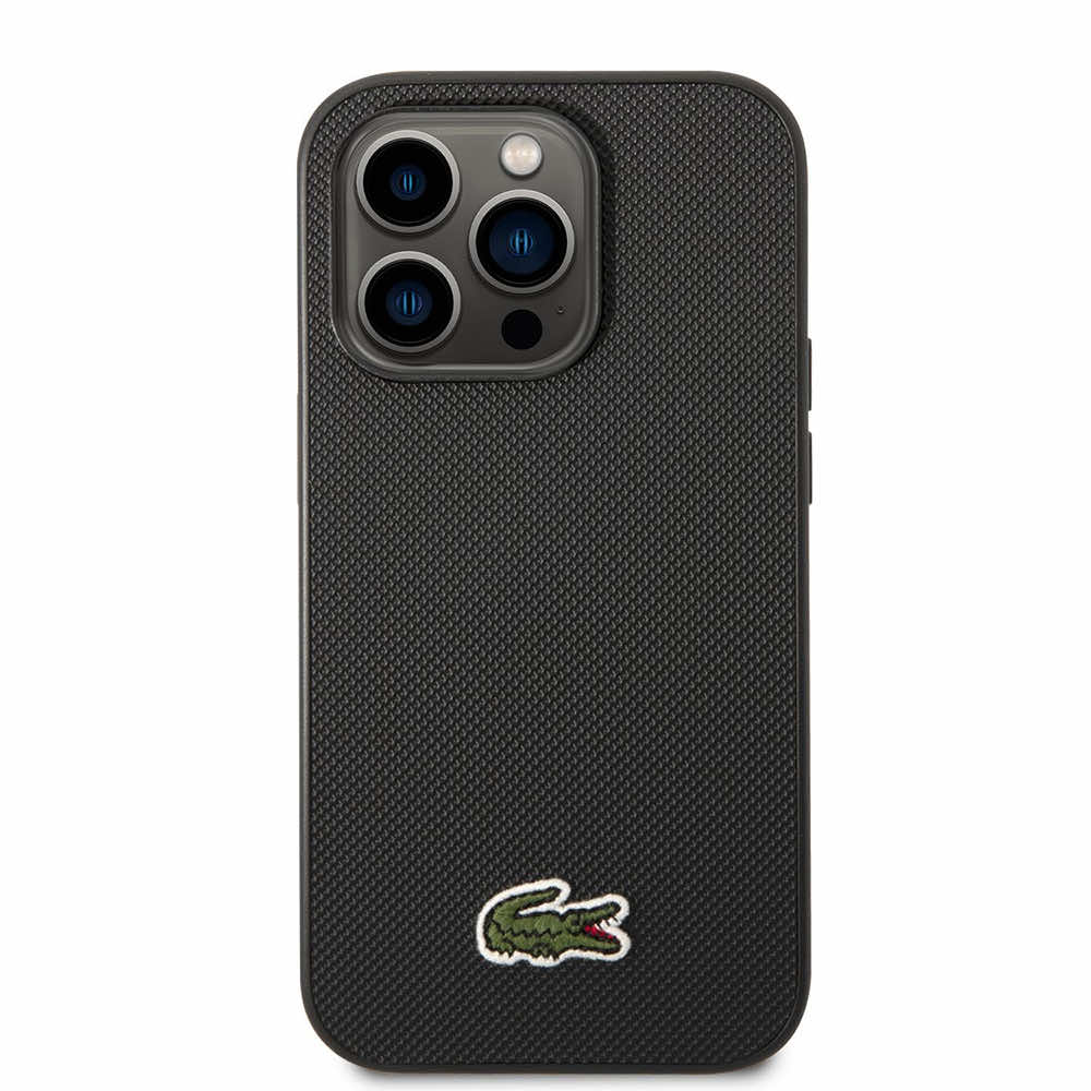 Lacoste Iconic Petit Pique Logo Case - дизайнерски кожен кейс за iPhone 14 Pro (черен)
