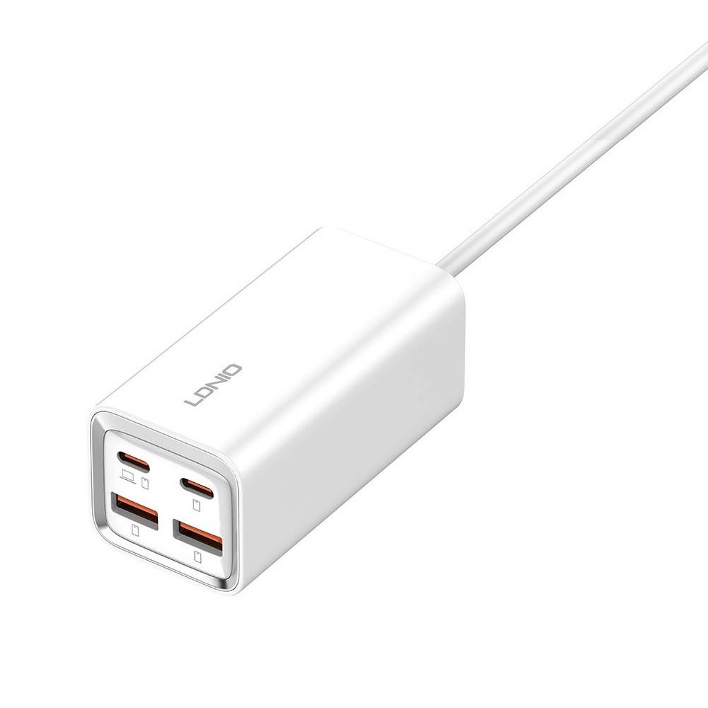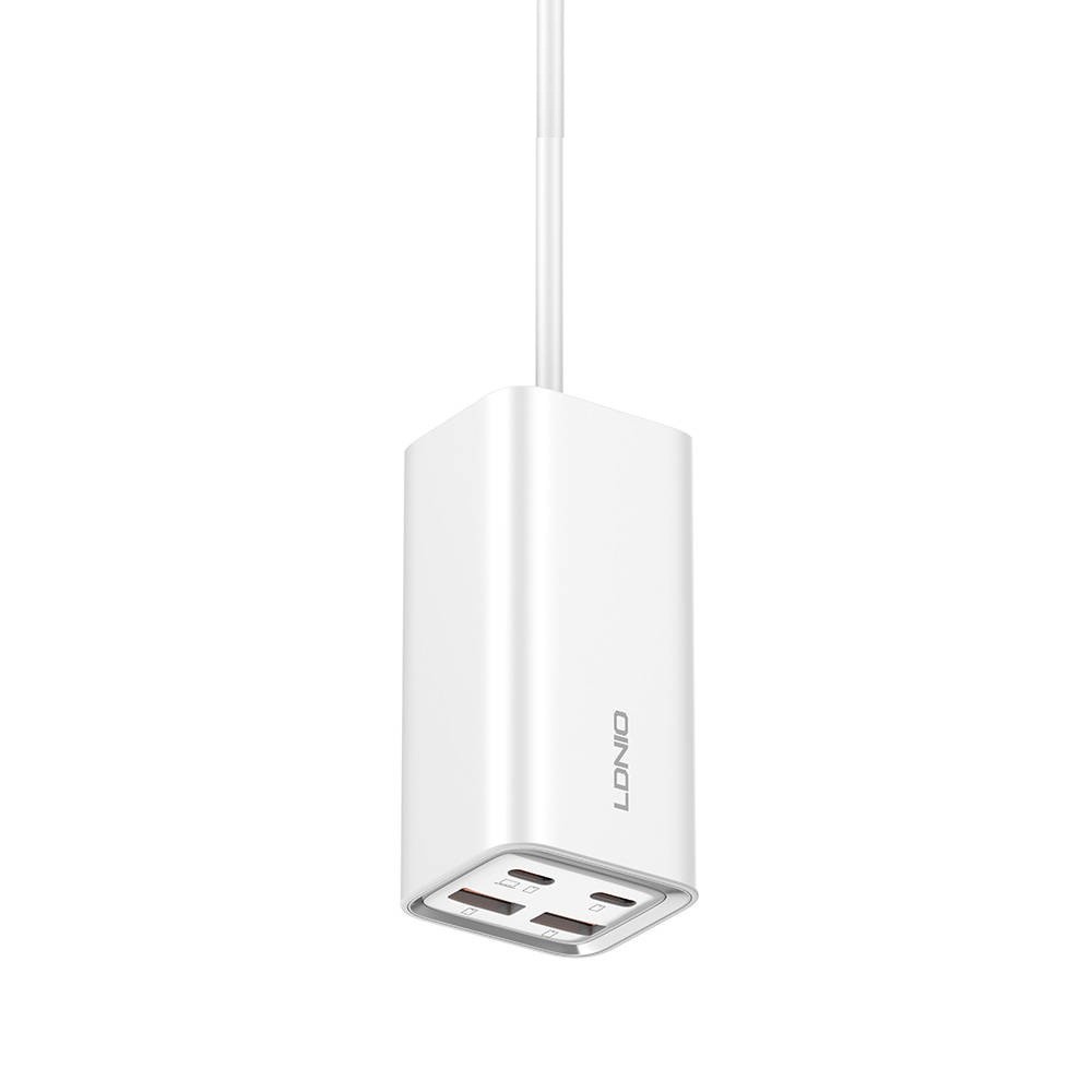 LDNIO Fast Desktop Wall Charger 65W - захранване за ел. мрежа за лаптопи, смартфони и таблети с 2xUSB-A и 2xUSB-C изходи с технология за бързо зареждане и USB-C кабел (бял)