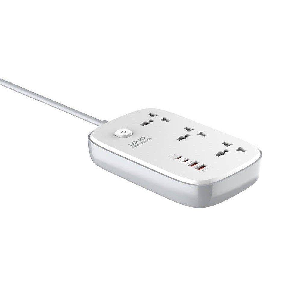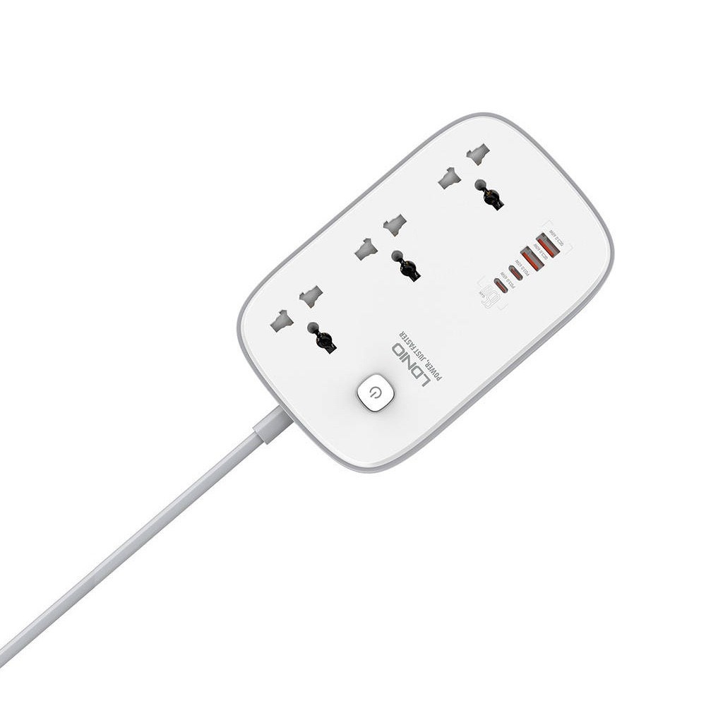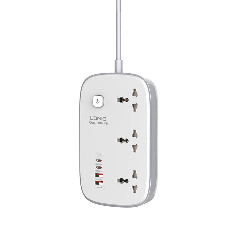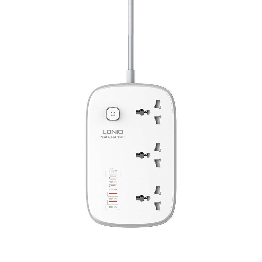 LDNIO GaN Desktop Power Strip With USB-C Hub 65W - разклонител с 3 AC изхода и вградени 2хUSB-C и 2хUSB-A изхода за мобилни устройства (бял)