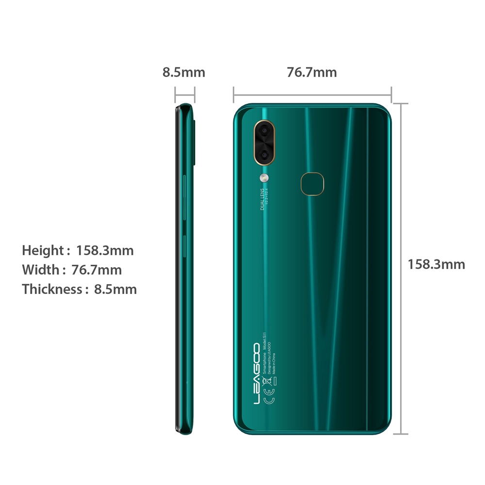 Leagoo S11, 6.3" безрамков дисплей, 8-ядрен 64Bit смартфон, двойна камера, 4GB RAM с 2 сим карти (Emerald)
