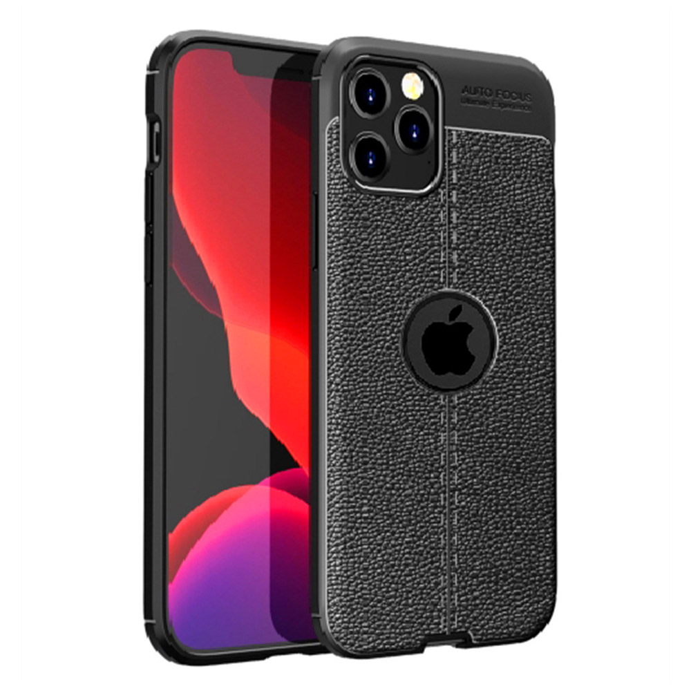 Leather Litchi Case - силиконов удароустойчив калъф за iPhone 12 Pro Max (черен)