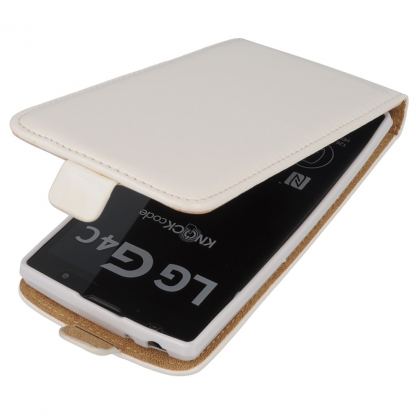 Leather Pocket Flip Case - вертикален кожен калъф с джоб за LG G4C, LG Magna (бял)