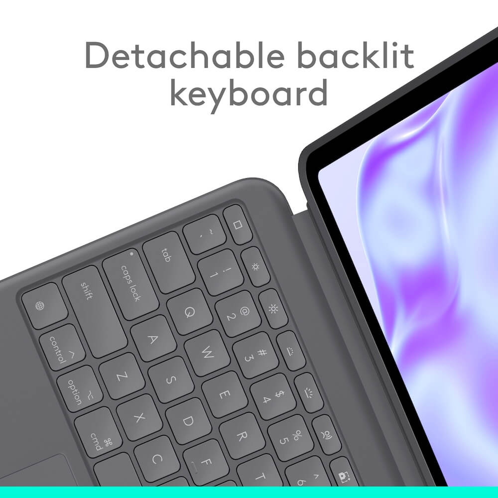 Logitech Combo Touch US - безжична клавиатура с тракпад и отделящ се кейс с поставка за Apple iPad Pro 13 (2024) (тъмносив)