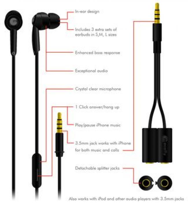 Macally TunePal слушалки с микрофон и аудио сплитер за iPhone и iPod