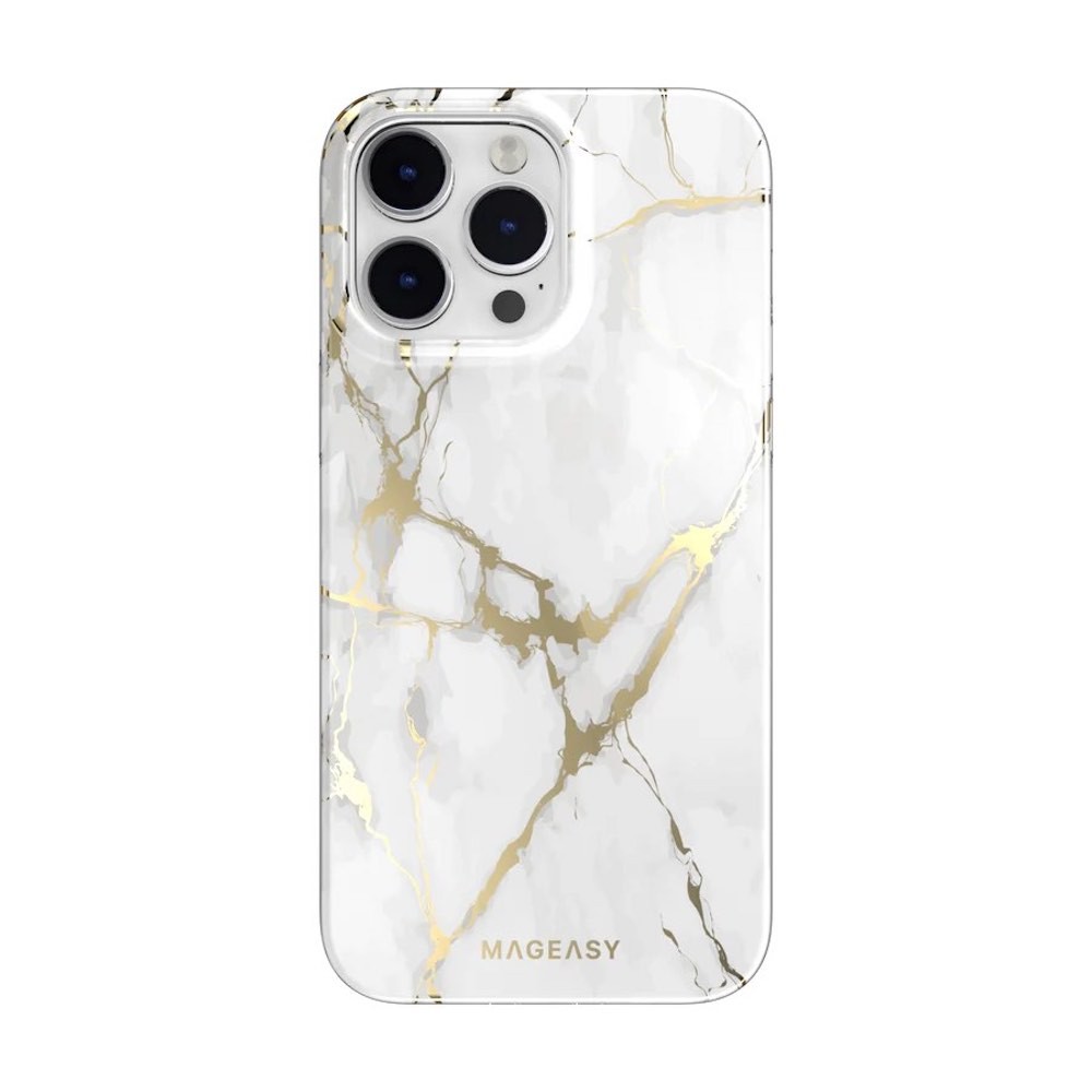 Mageasy Marble Case - дизайнерски хибриден удароустойчив кейс за iPhone 14 Pro Max (бял)