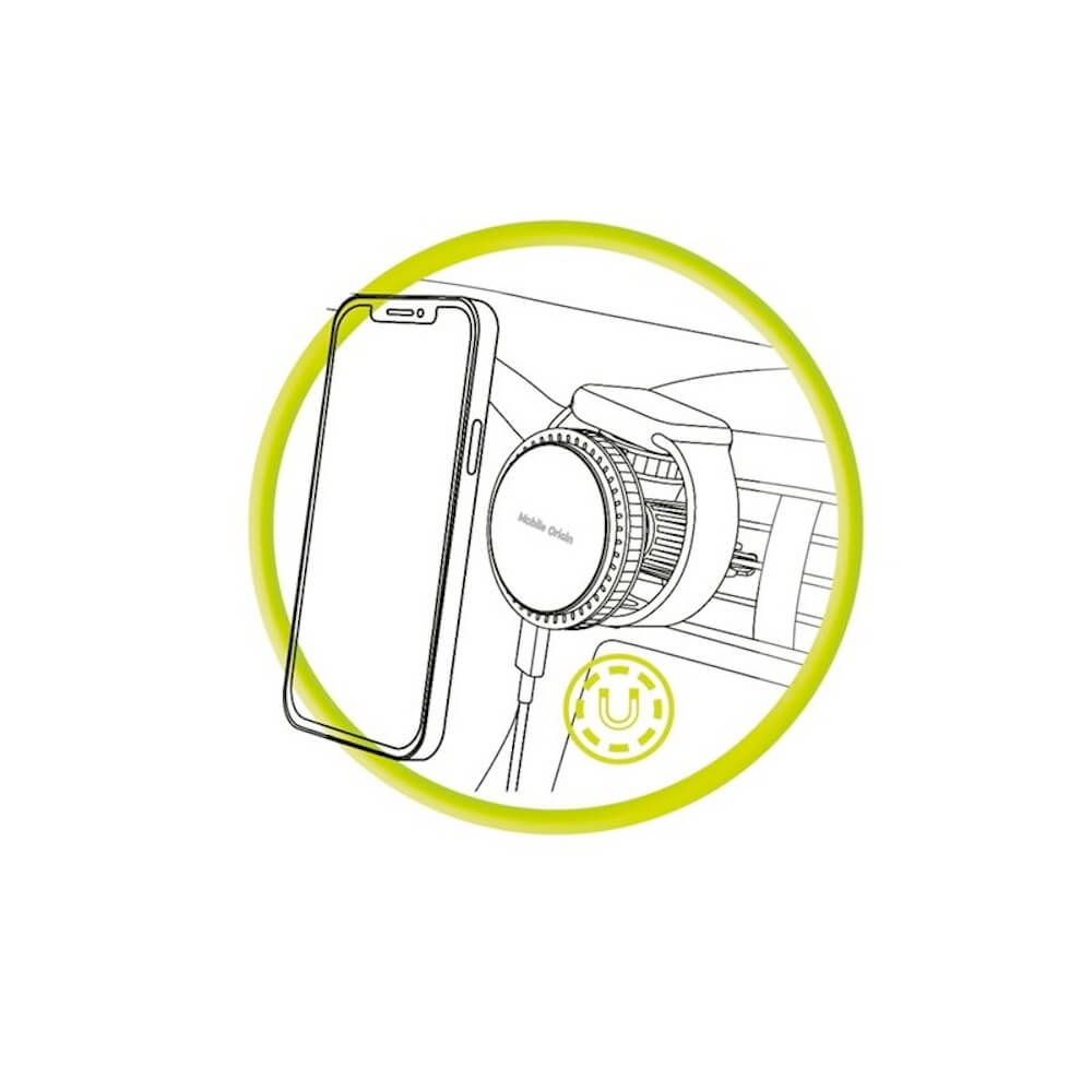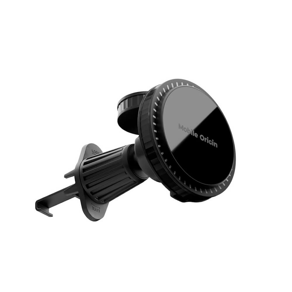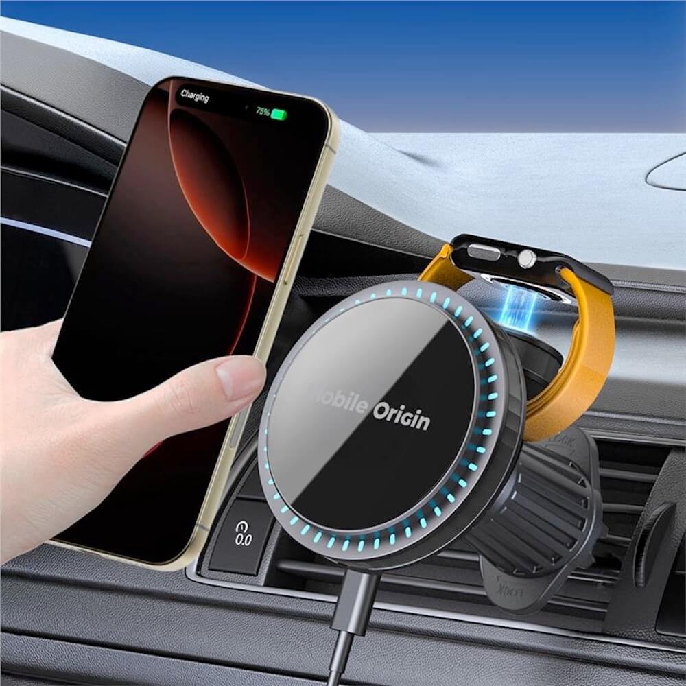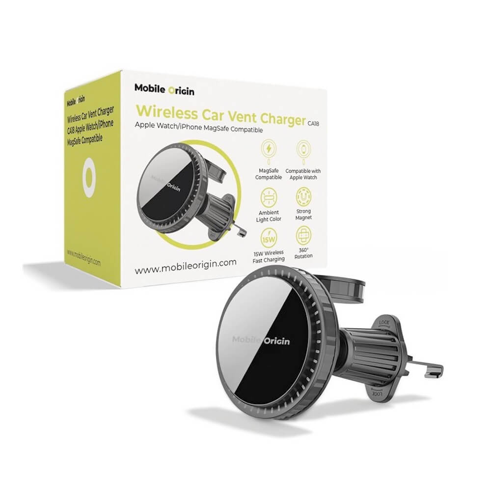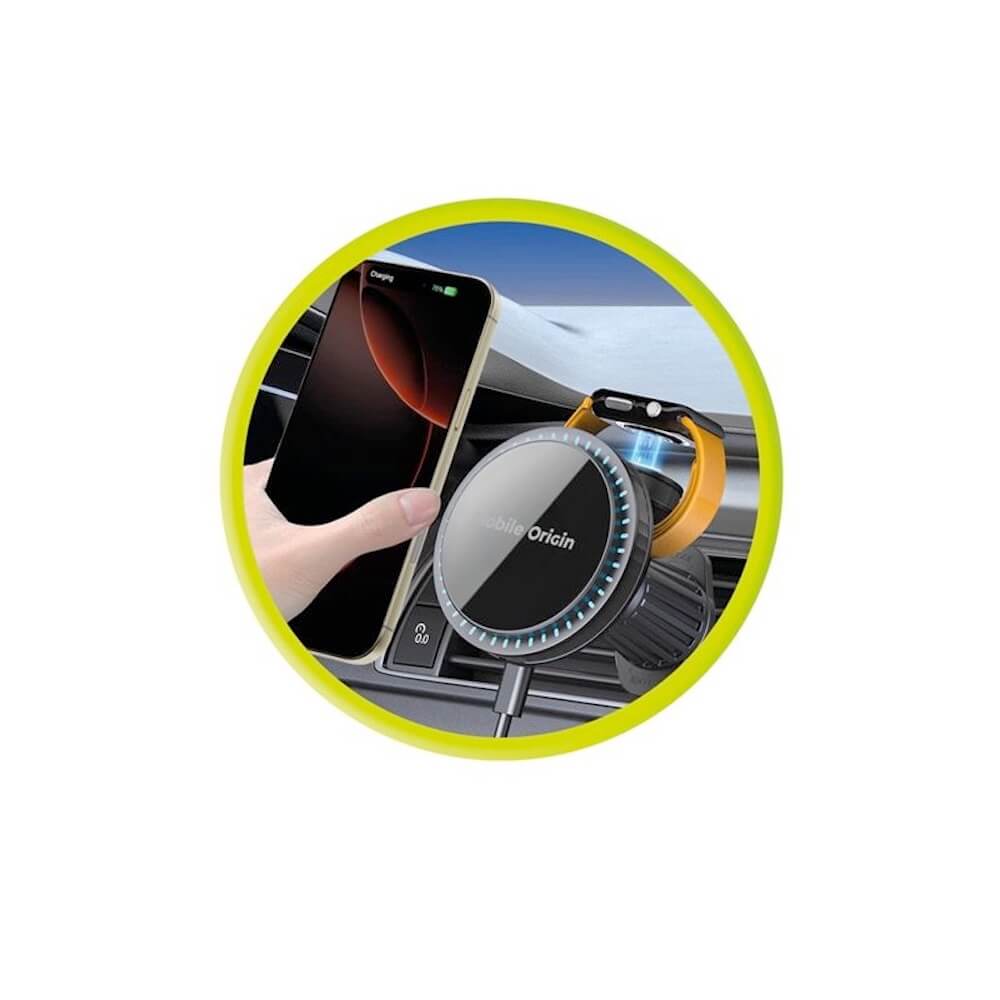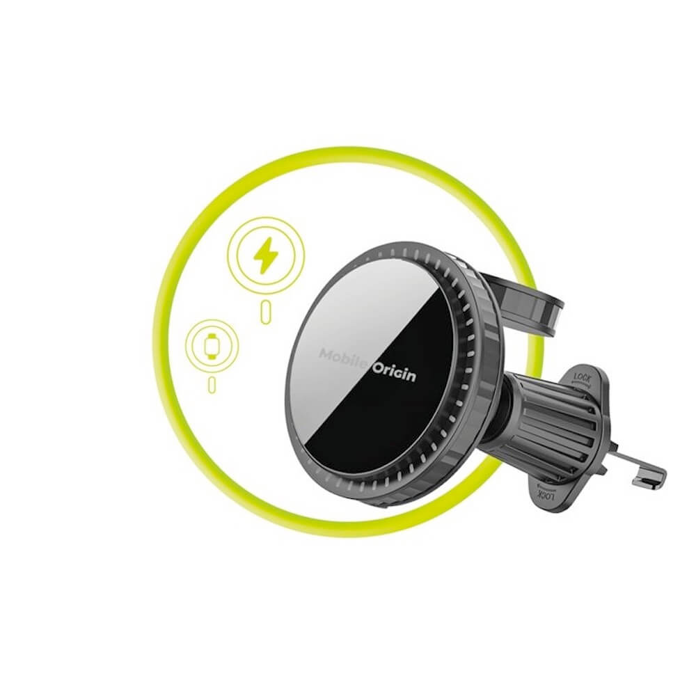 Магнитна поставка за радиатора на кола с безжично зареждане за iPhone с MagSafe и Apple Watch - Mobile Origin CA18 2-in-1 Car Magnetic Wireless Charger 18W (черен)