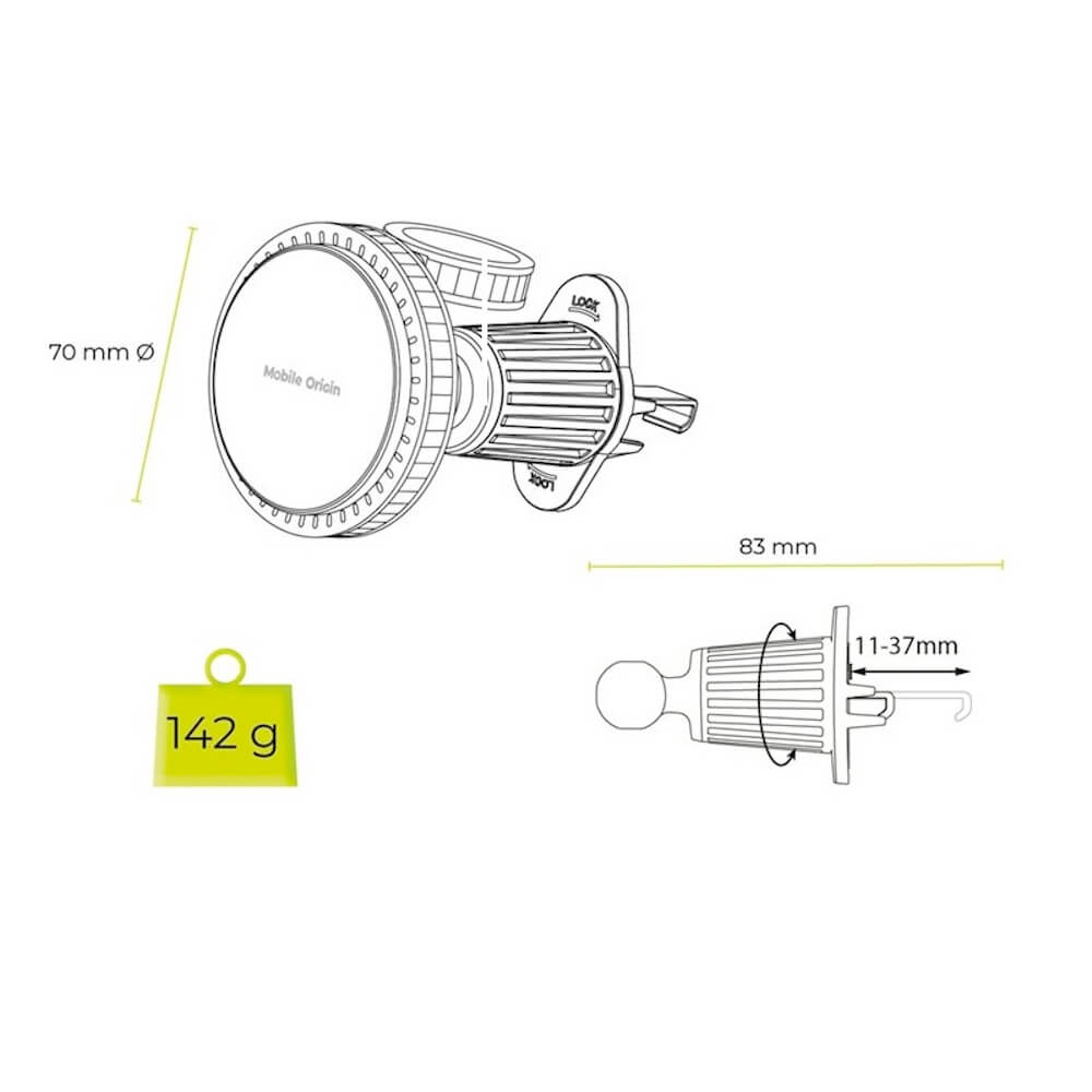 - Закрепва сигурно вашия смартфон към вентилационният отвор на автомобила ви, за по-удобно и оптимално ниво на гледане
