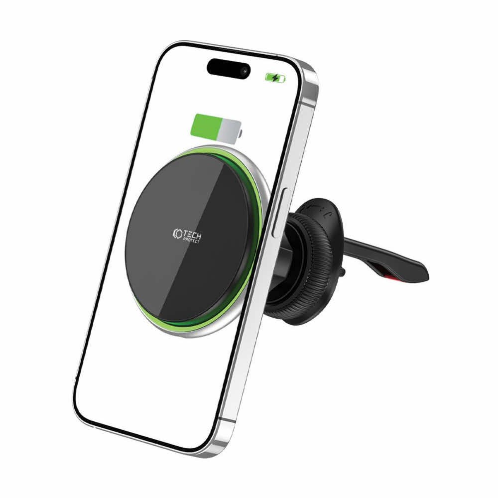 Магнитна поставка за радиатора на кола с безжично зареждане за iPhone с MagSafe - Tech-Protect MM15W-V3 MagSafe Air Vent Car Mount 15W (черен)
