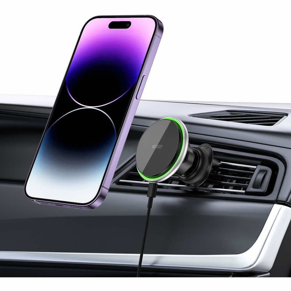 С поставката Tech-Protect можете да се наслаждавате на безжично зареждане на вашия смартфон, докато шофирате. Тя осигурява оптимално ниво на гледане и е идеална за всеки, който иска да извлече максимума от своя iPhone по време на пътуване.